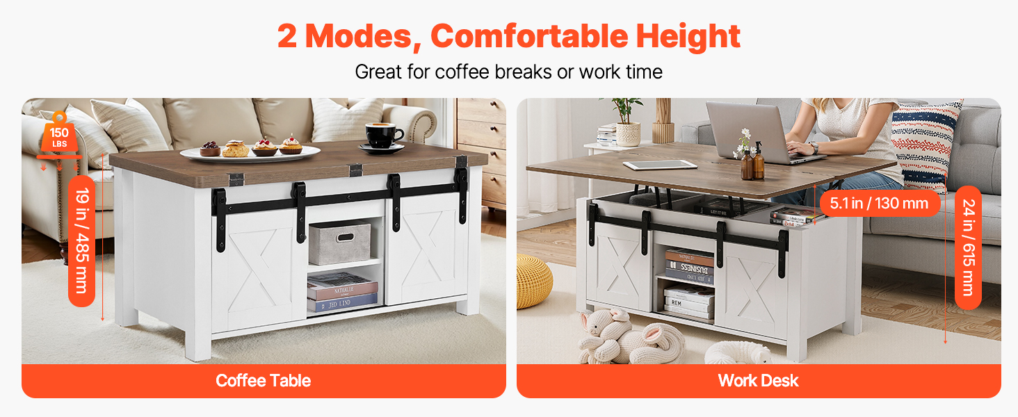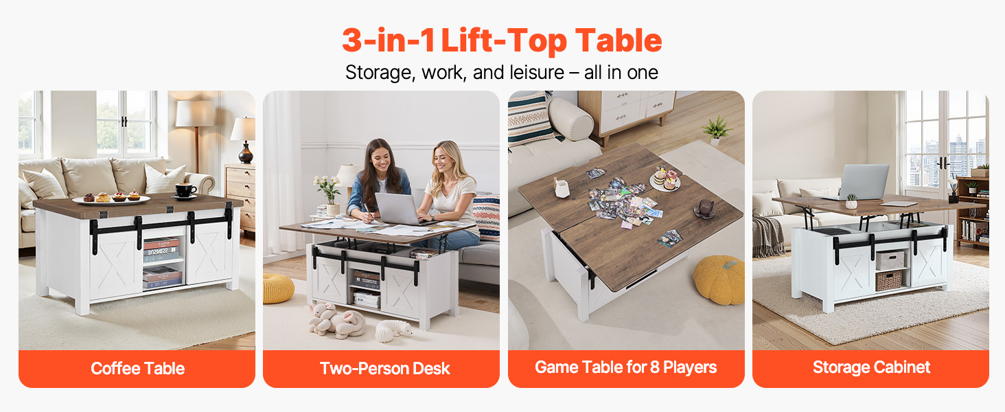 Použite ho ako tradičný konferenčný stolík a úložnú skrinku pri pohovke na príležitostné leňošenie. V prípade potreby jednoducho zdvihnite dosku a premeníte ho na funkčný stôl domácej kancelárie - ideálny na príležitostné pracovné stretnutia bez potreby samostatného pracovného miesta.
