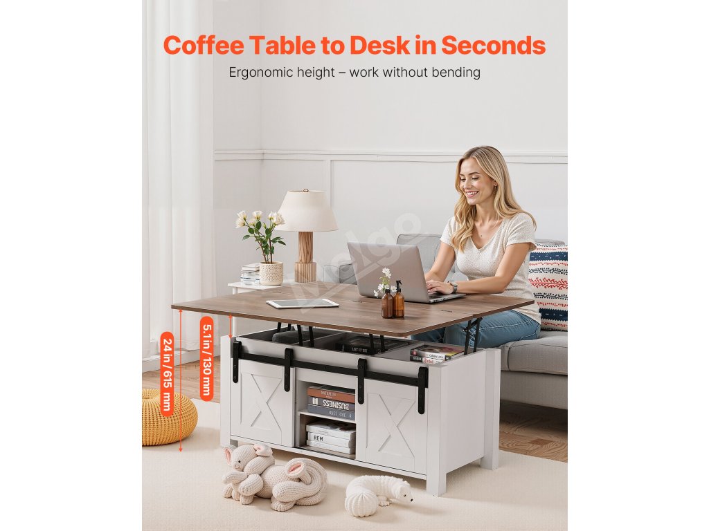 Tento multifunkčný konferenčný stolík so zdvíhacou doskou kombinuje štýl a funkčnosť so skrytým úložným priestorom, takže je ideálnym riešením na každodenné skladovanie. Vďaka hladkému zdvíhaciemu mechanizmu sa ľahko premení na dočasný pracovný alebo jedálenský stôl a bez námahy sa prispôsobí vašim potrebám - či už relaxujete, pracujete z domu, alebo si vychutnávate bežné jedlo v obývačke.