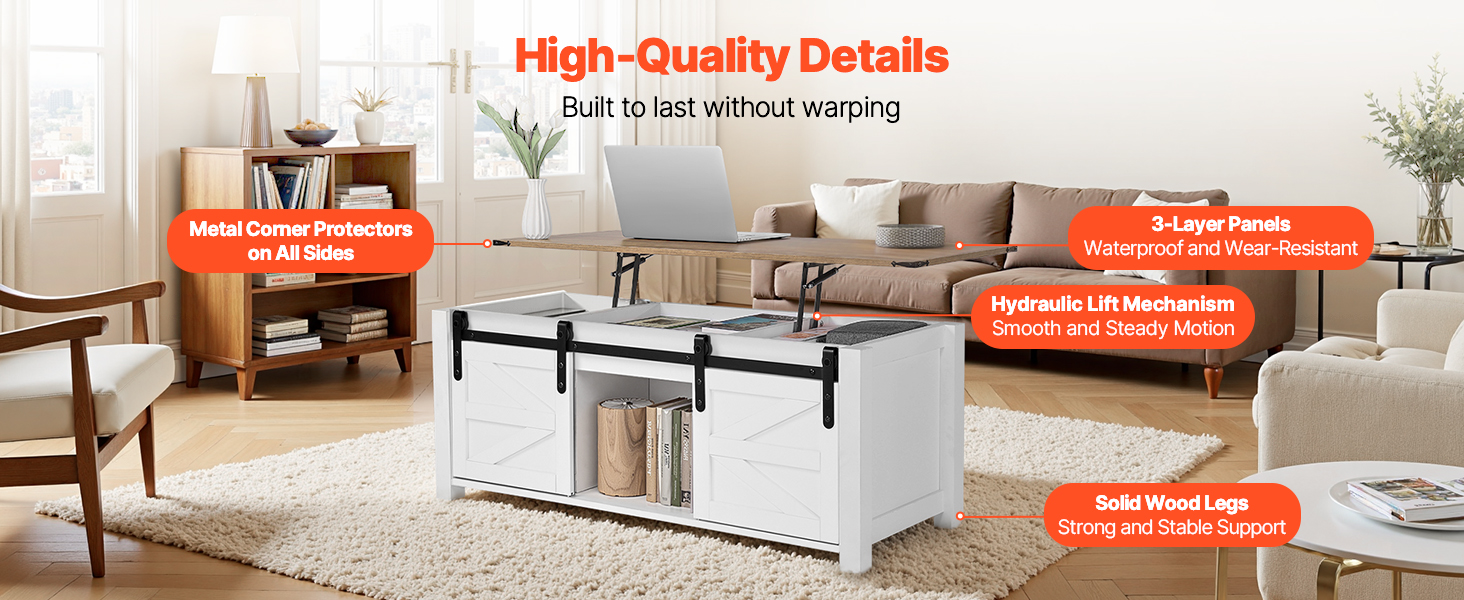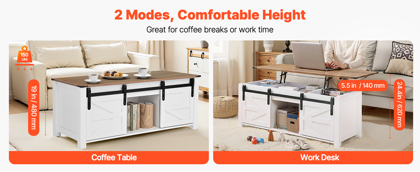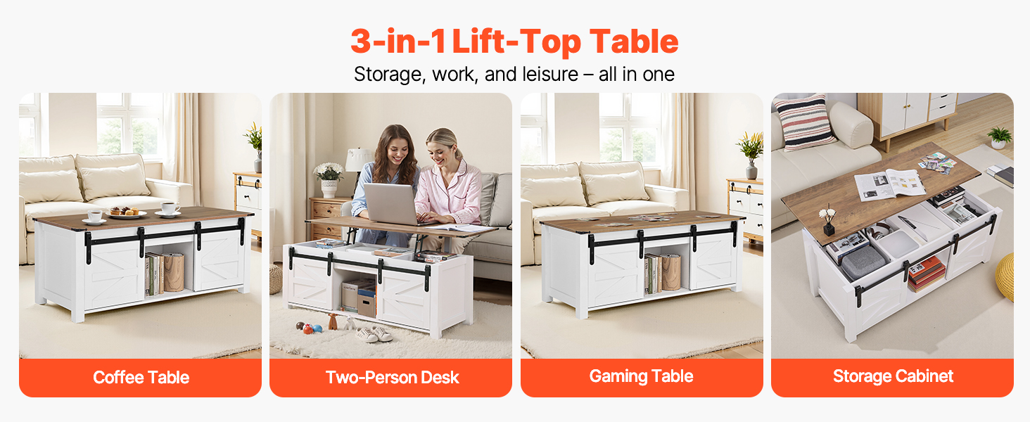 Tento multifunkčný konferenčný stolík so zdvíhacou doskou kombinuje štýl a funkčnosť so skrytým úložným priestorom, takže je ideálnym riešením na každodenné skladovanie. Vďaka hladkému zdvíhaciemu mechanizmu sa ľahko premení na dočasný pracovný alebo jedálenský stôl a bez námahy sa prispôsobí vašim potrebám - či už relaxujete, pracujete z domu, alebo si vychutnávate bežné jedlo v obývačke.