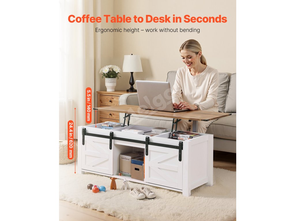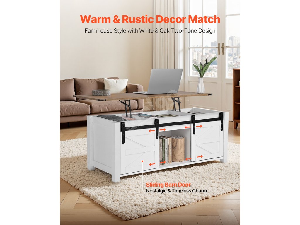 Tento multifunkčný konferenčný stolík so zdvíhacou doskou kombinuje štýl a funkčnosť so skrytým úložným priestorom, takže je ideálnym riešením na každodenné skladovanie. Vďaka hladkému zdvíhaciemu mechanizmu sa ľahko premení na dočasný pracovný alebo jedálenský stôl a bez námahy sa prispôsobí vašim potrebám - či už relaxujete, pracujete z domu, alebo si vychutnávate bežné jedlo v obývačke.