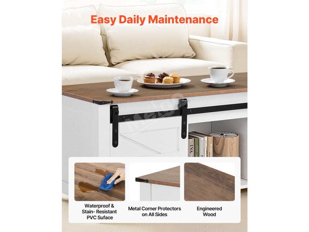 Použite ho ako tradičný konferenčný stolík a úložnú skrinku pri pohovke na príležitostné leňošenie. V prípade potreby jednoducho zdvihnite dosku a premeníte ho na funkčný stôl domácej kancelárie - ideálny na príležitostné pracovné stretnutia bez potreby samostatného pracovného miesta.
