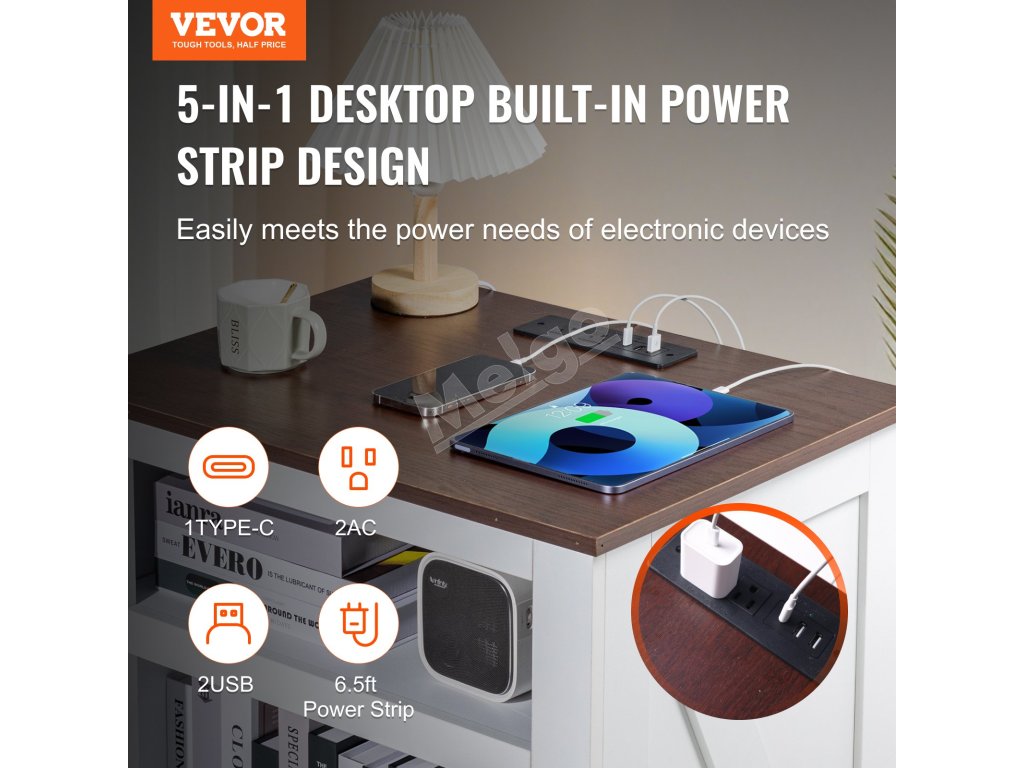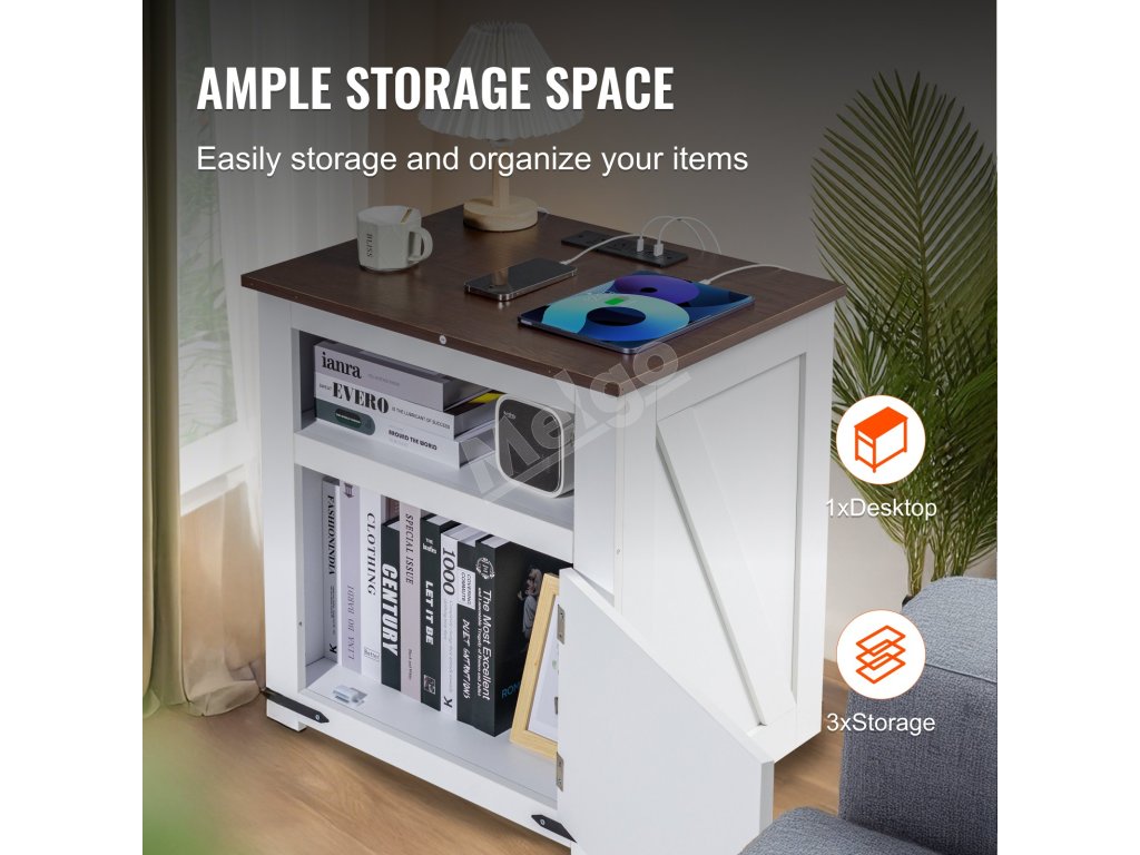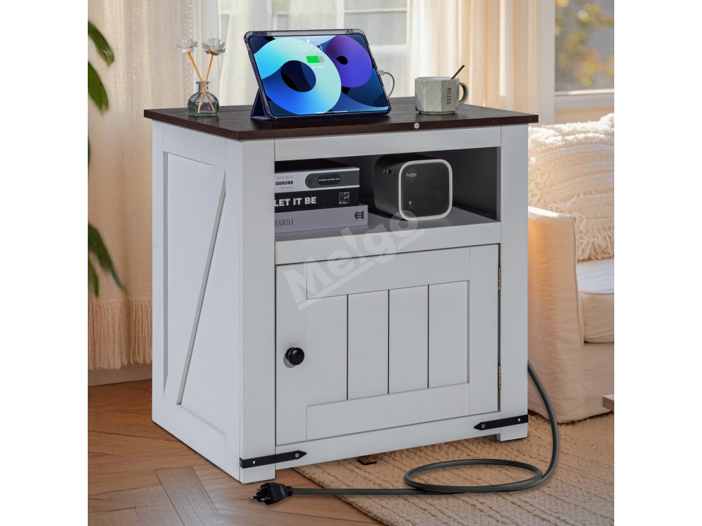 Tento koncový stolík do domácnosti ponúka zabudované nabíjanie s 2 zásuvkami na striedavý prúd, 2 portami USB a 1 portom typu C, ktoré poskytujú pohodlie pre všetky vaše elektronické zariadenia. Pomáha organizovať knihy, dekoratívne predmety a pomôcky, vďaka čomu udrží váš priestor čistý a uprataný.