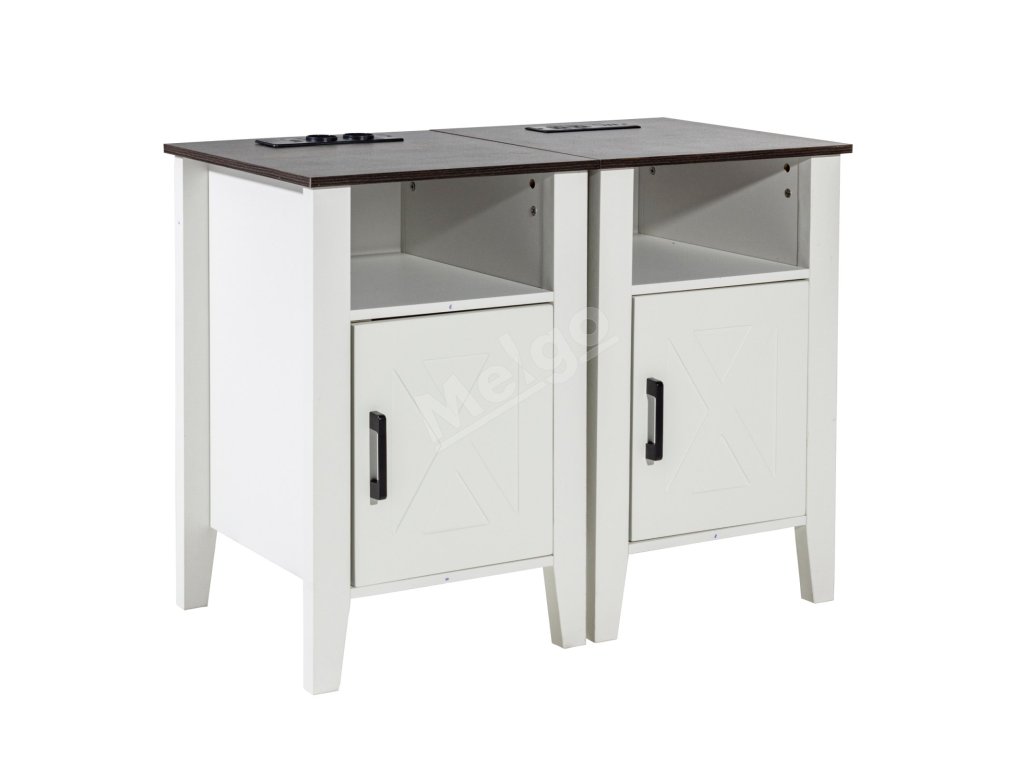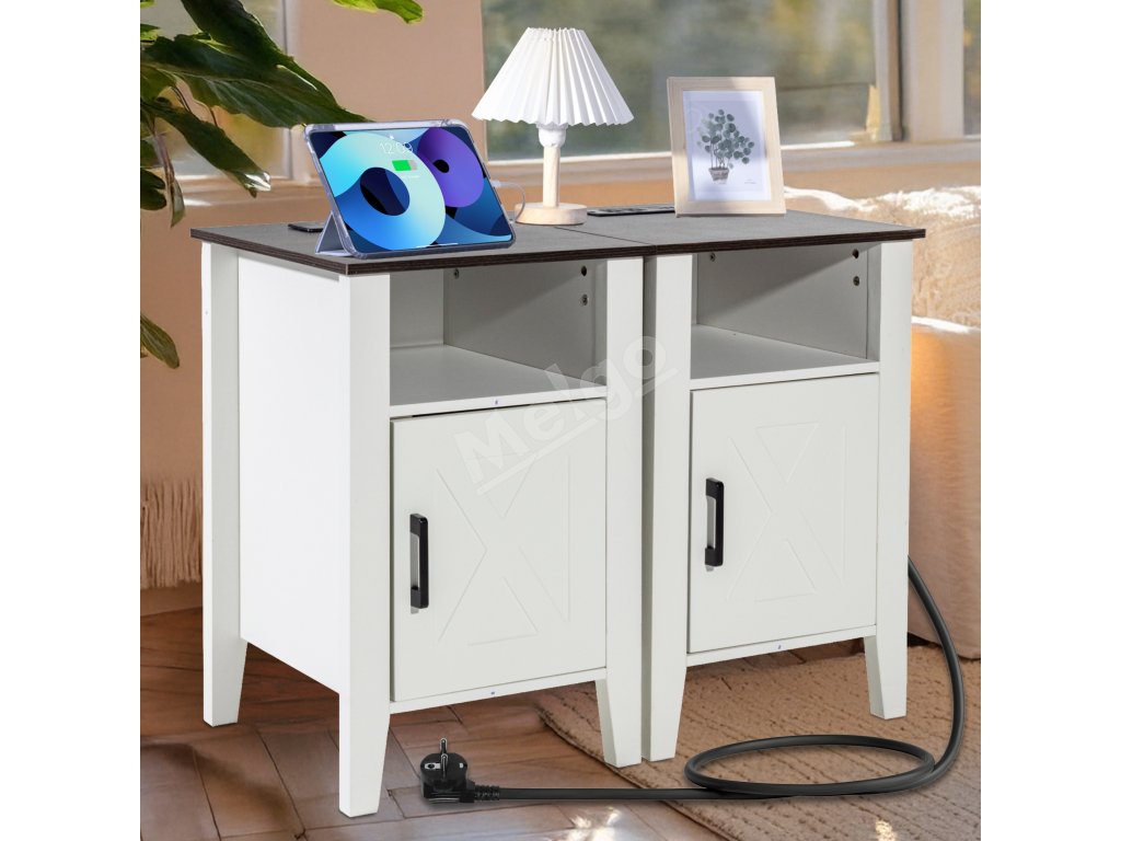 Sada 2 štvorcových nočných stolíkov s úložnou skrinkou, usb, led biela