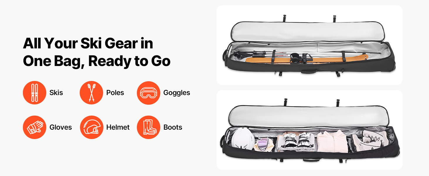 Táto taška na lyže na kolieskach na cestovanie lietadlom zaručuje bezpečnú a spoľahlivú prepravu vášho vybavenia v lyžiarskych strediskách, počas cestovania alebo doma.