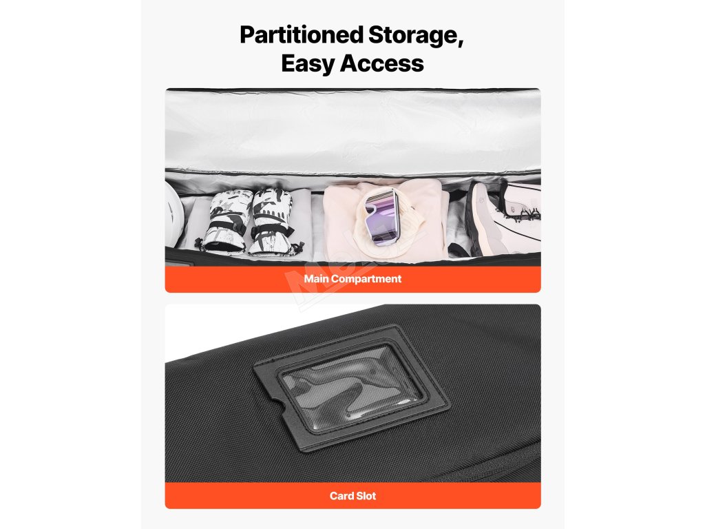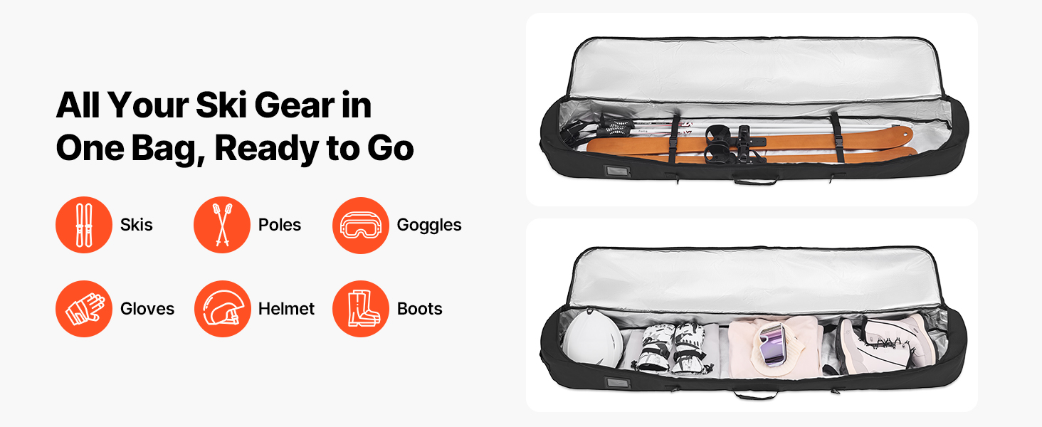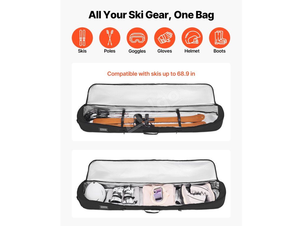 Vďaka priestrannému úložnému priestoru a viacerým priehradkám, ktoré sú vyrobené z nepremokavej a opotrebovaniu odolnej oxfordskej tkaniny, sa naša cestovná taška na snowboard na cesty lietadlom ľahko prenáša v ruke alebo na ramene. Do jednej tašky sa zmestí všetka vaša lyžiarska výbava.