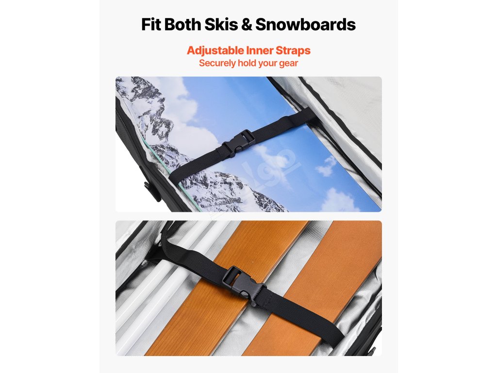 Vnútorné popruhy udržia váš snowboard bezpečne na mieste bez poškodenia. Vďaka polstrovaným ramenným popruhom, zosilneným zipsom a prešitiu poskytuje táto taška na snowboard na cesty lietadlom dodatočnú ochranu. Ideálna pre zaneprázdnených lyžiarov a snowboardistov.