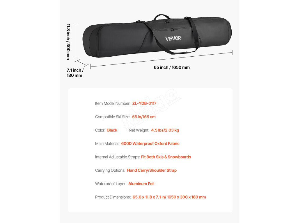 Taška na snowboard a lyže do 165 cm, polstrovaná 600D, s popruhmi