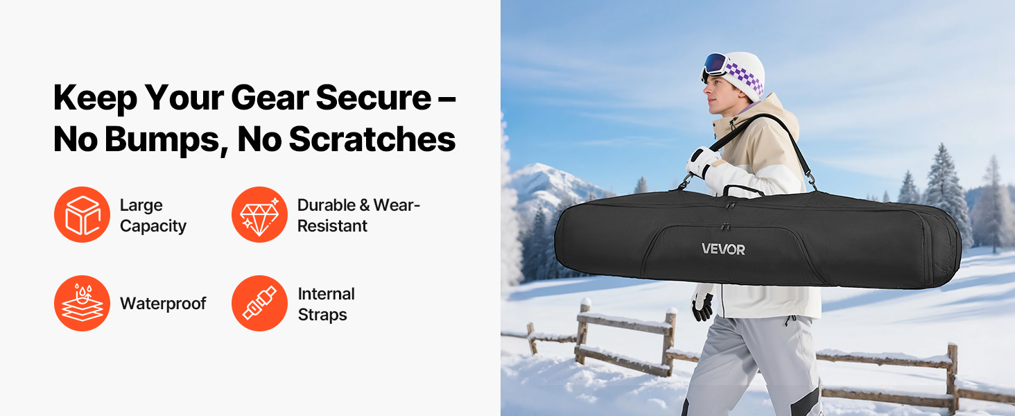 Táto polstrovaná taška na snowboard zaistí bezpečnú a spoľahlivú prepravu vášho vybavenia v lyžiarskych strediskách, počas cestovania alebo doma.