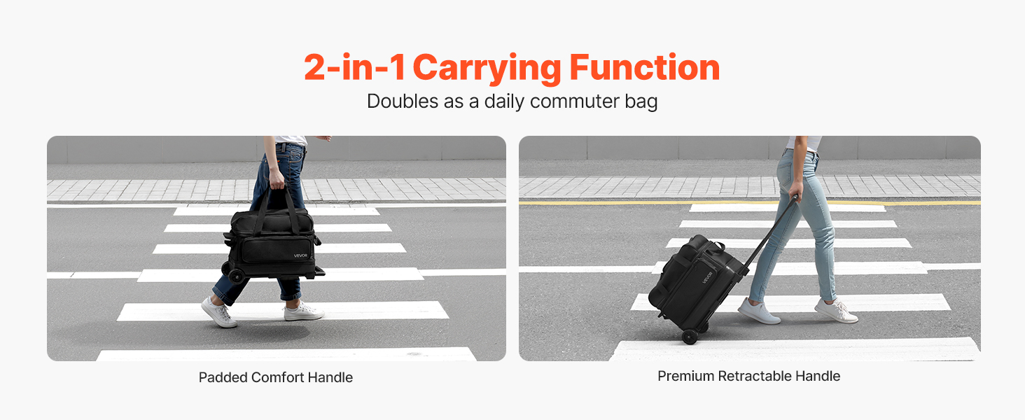 Nastaviteľná teleskopická rukoväť a rukoväť so zapínaním na háčik a slučku na pojazdnej bowlingovej taške podporujú režimy prenášania aj ťahania, čím sa mobilita zvyšuje o 56 %.