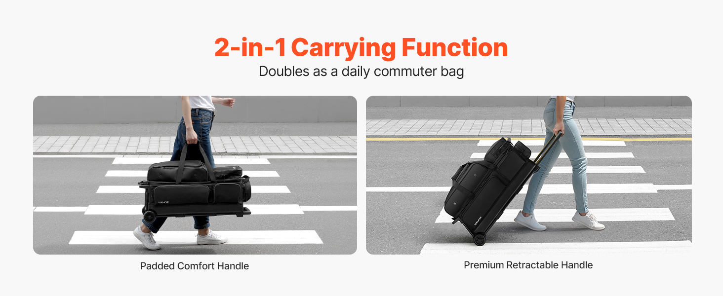 Nastaviteľná teleskopická rukoväť a rukoväť so zapínaním na háčik na kolieskových bowlingových taškách podporujú režimy prenášania aj ťahania, čím zvyšujú mobilitu o 53 %.