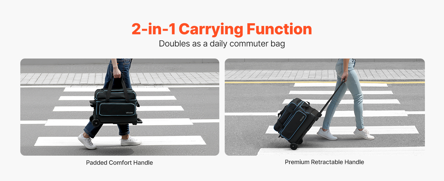 Nastaviteľná teleskopická rukoväť a rukoväť so zapínaním na háčik a pútko na pojazdnej bowlingovej taške podporujú režimy prenášania aj ťahania, čím zvyšujú mobilitu o 55 %.