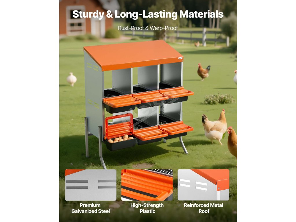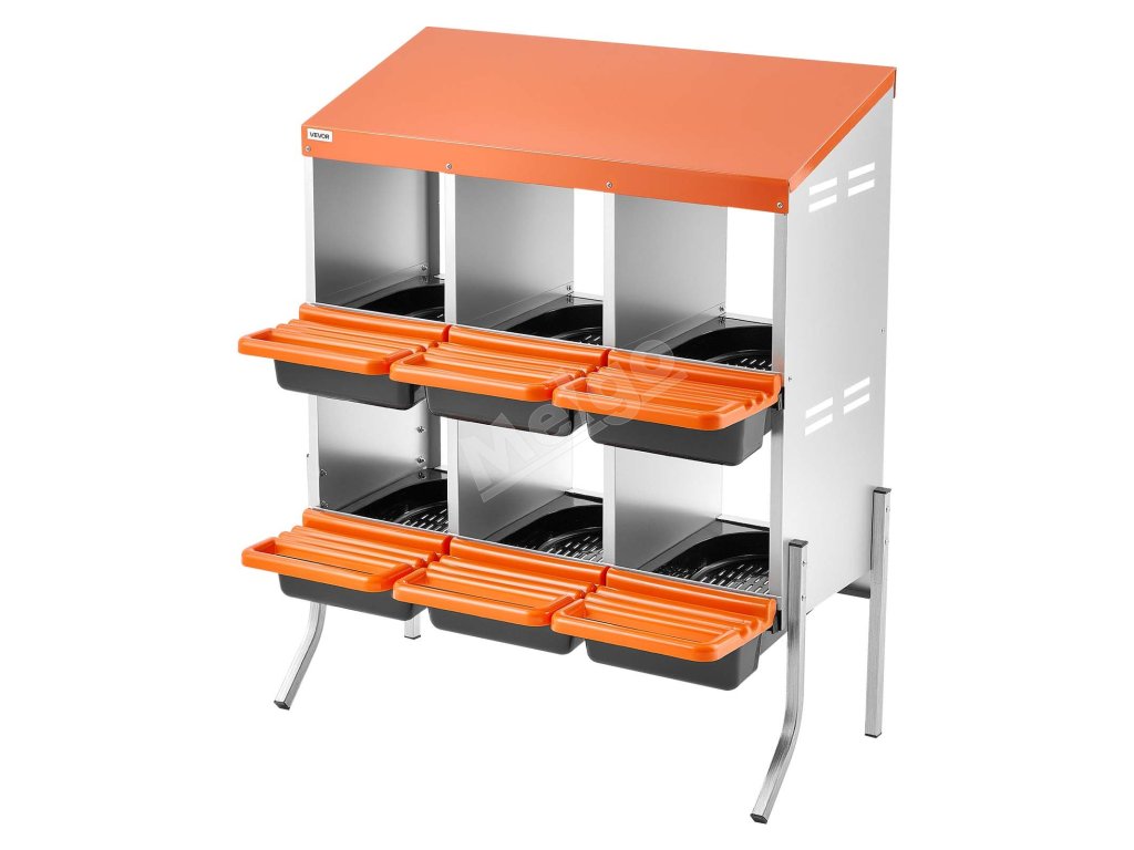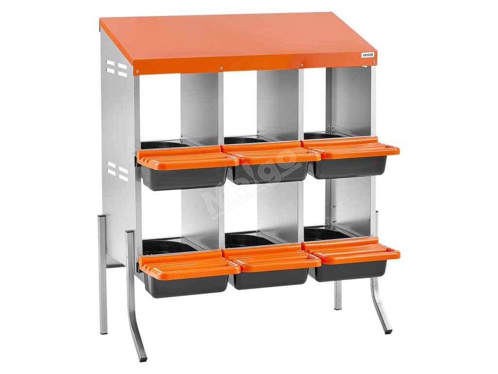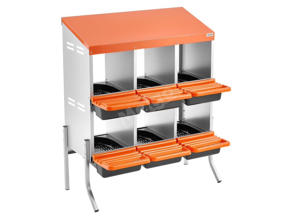 Hniezda pre sliepky 6 priehradok, pozinkovaná oceľ a plast, s nohami