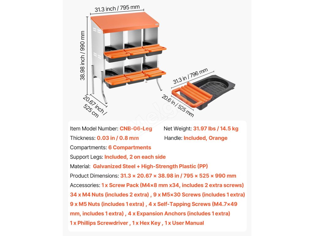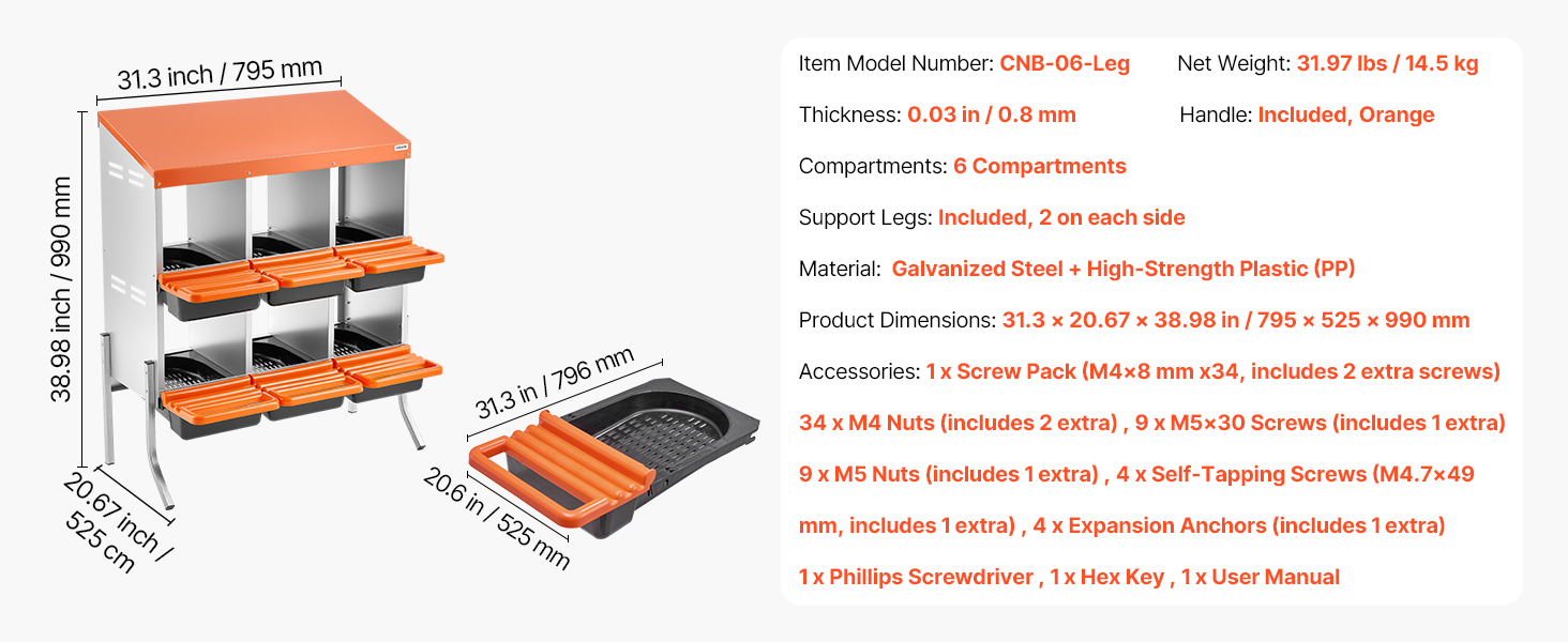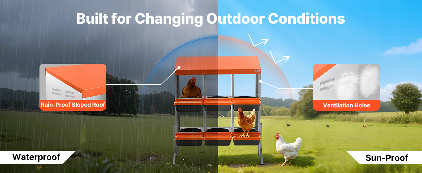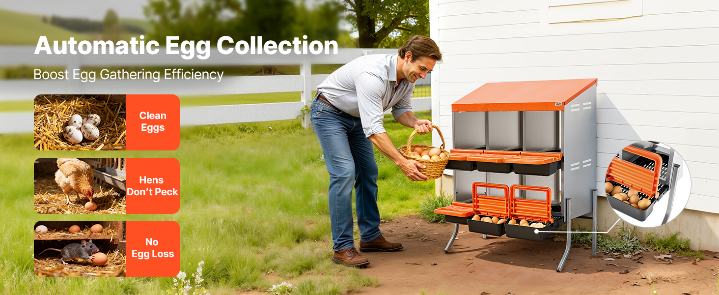 Tieto boxy na znášanie kurčiat sú navrhnuté s dostatočným priestorom a sú vhodné pre rôzne kŕdle. Každý vták má k dispozícii súkromný, pohodlný priestor na znášanie, čo podporuje vyššiu znášku a kvalitu vajec. Vďaka štyrom robustným oporným nohám zostáva konštrukcia stabilná a zároveň sa ľahko premiestňuje, čo ponúka flexibilitu pre rôzne miesta.