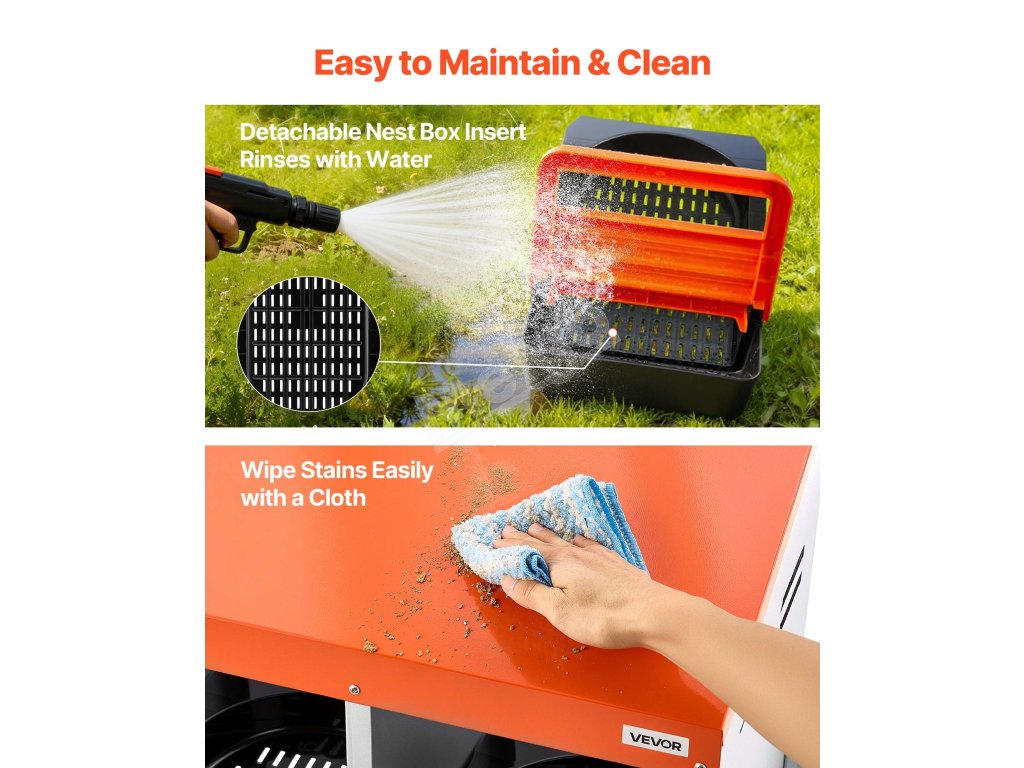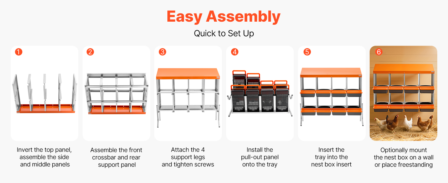 Nosnice pre sliepky sa rýchlo a jednoducho inštalujú. Súčasťou balenia je návod na použitie a všetko potrebné príslušenstvo. Jednoducho postupujte podľa návodu na rýchle a jednoduché nastavenie.