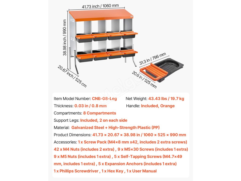 Hniezdo pre sliepky 8 priehradok, odvaľovacie s nohami, pozink. oceľ