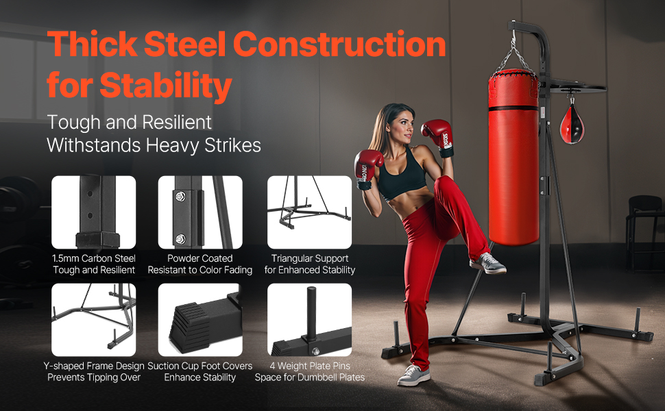 Náš ťažký stojan na boxovacie vrece je vyrobený z uhlíkovej ocele s dostatočnou hrúbkou, ktorá zabezpečuje stabilitu a zabraňuje kývaniu alebo prevráteniu aj počas najintenzívnejších tréningov. Či už sa venujete bojovému tréningu alebo odbúravaniu stresu, tento stojan splní vaše najnáročnejšie tréningové potreby.
