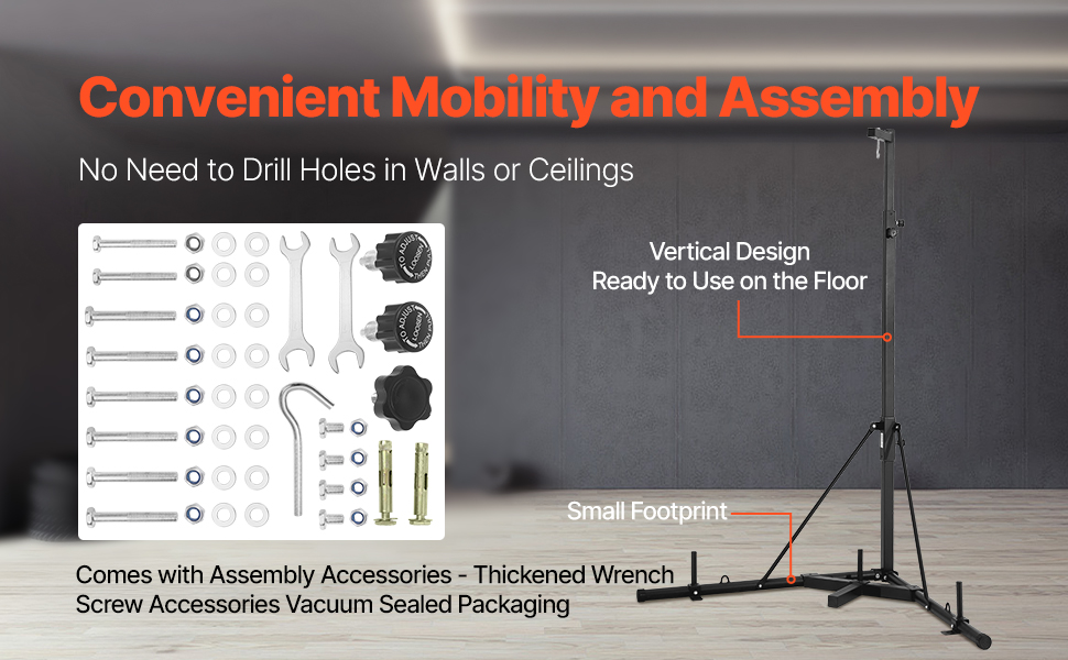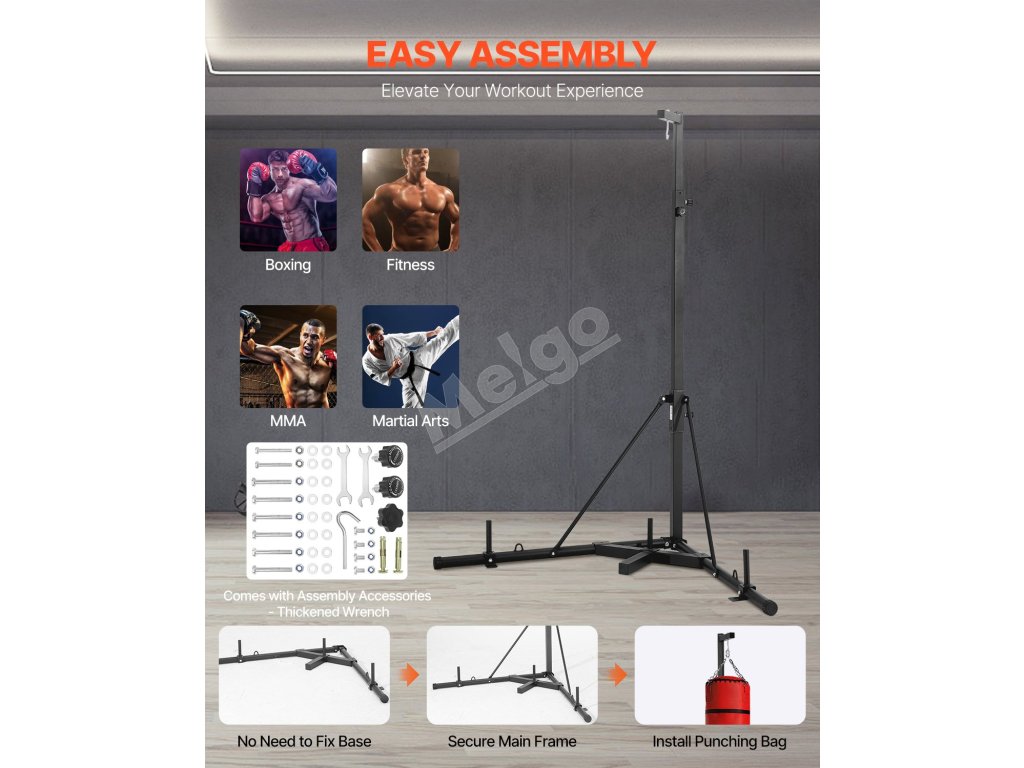 Stojan na vrecia s pieskom si nevyžaduje upevnenie k podlahe, stačí upevniť hlavný rám a nainštalovať boxovacie vrece. S naším návodom sa dá stojan zmontovať za niekoľko minút. Montážne náradie je súčasťou balenia a aj samostatná inštalácia ženami sa dá rýchlo vykonať.