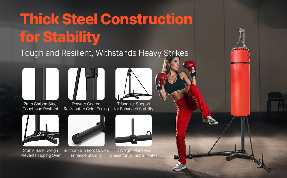 Náš ťažký stojan na boxovacie vrece je vyrobený z uhlíkovej ocele s dostatočnou hrúbkou, aby zabezpečil stabilitu a zabránil kývaniu alebo prevráteniu aj počas najintenzívnejších tréningov. Či už sa venujete bojovému tréningu alebo odbúravaniu stresu, tento stojan splní vaše najnáročnejšie tréningové potreby.