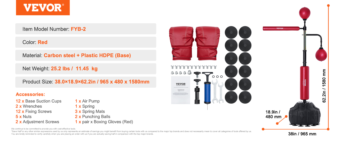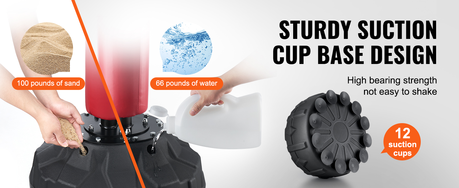 Základňu možno naplniť vodou alebo pieskom na udržanie stability. Prísavky v spodnej časti zabraňujú poškriabaniu podlahy a zabezpečujú stabilitu počas boxovania.