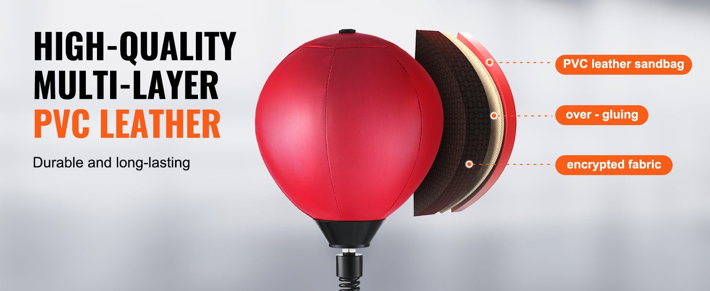 Toto reflexné boxovacie vrece je vyrobené z PVC koženého vreca na piesok + prelepenie + šifrovaná tkanina, pričom vnútorný mechúr bol vylepšený z gumy na latex, čo umožňuje používateľom trénovať dlhší čas bez obáv z poškodenia.