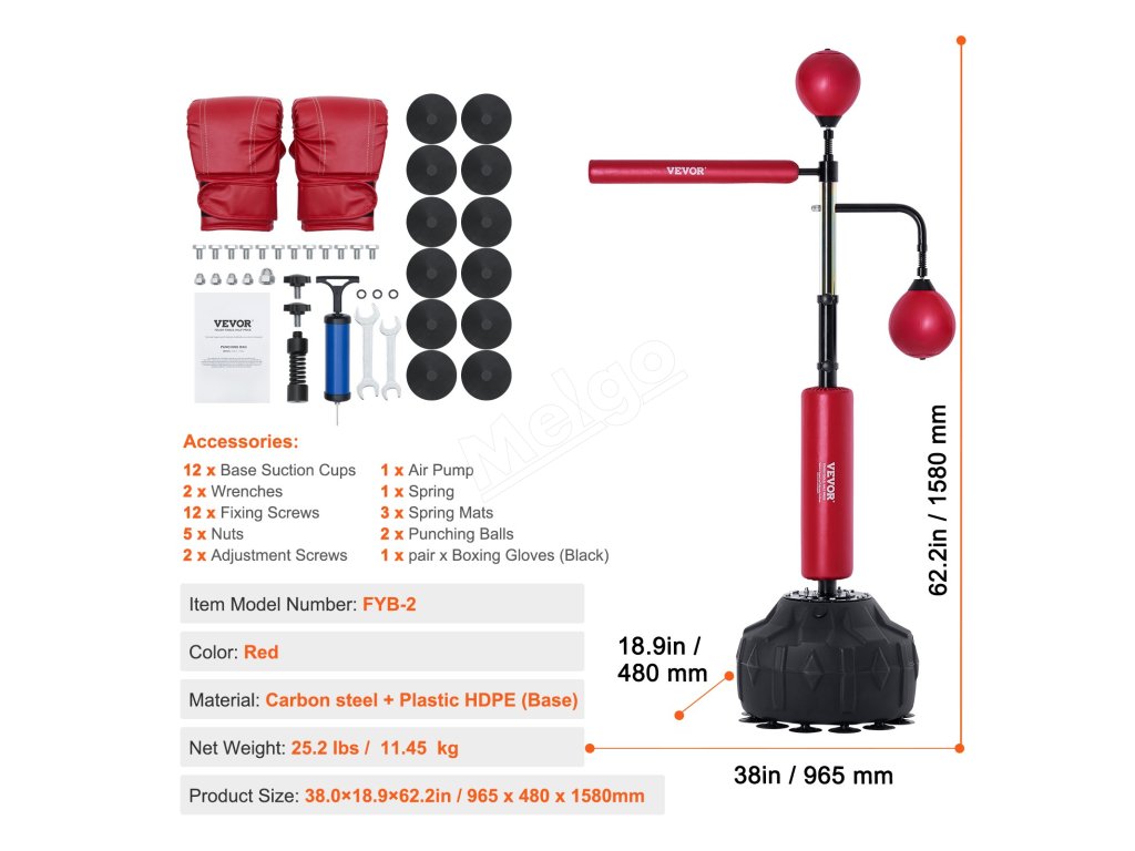 Súprava boxovacieho vreca sa dodáva so stojanom, vhodným pre ľudí rôzneho veku a výšky, nastaviteľným podľa telesnej veľkosti detí.