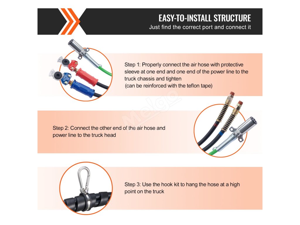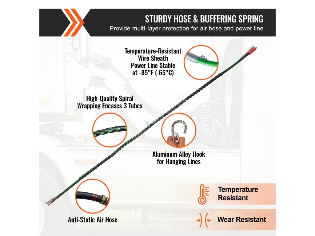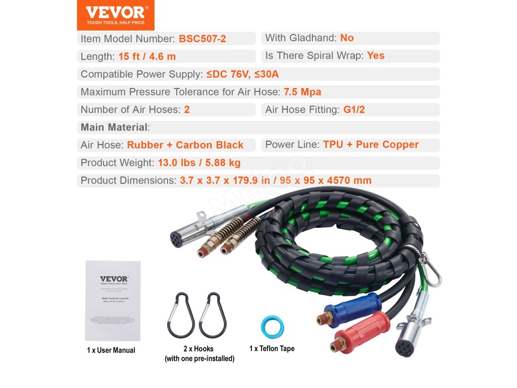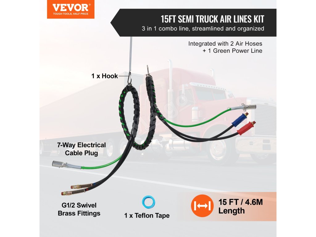 Súprava vzduchových a elektrických vedení pre náves 15FT, 3-in-1 7-pin