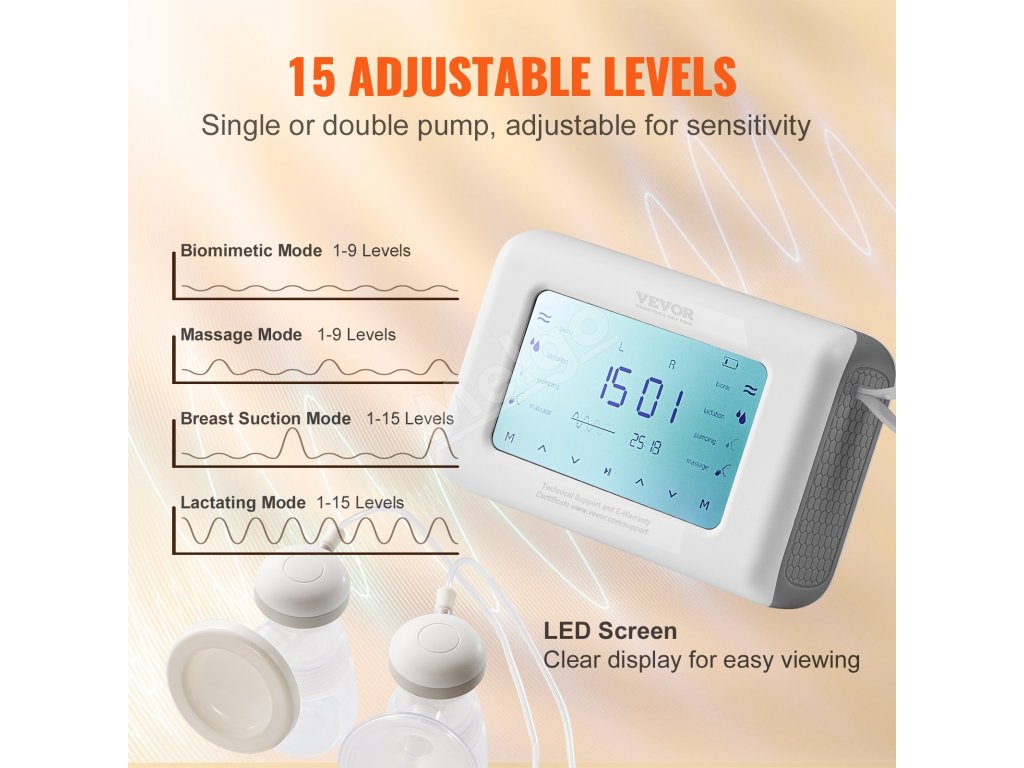 Elektrická odsávačka mlieka 4 režimy, 9/15 úrovní, 18/22 mm