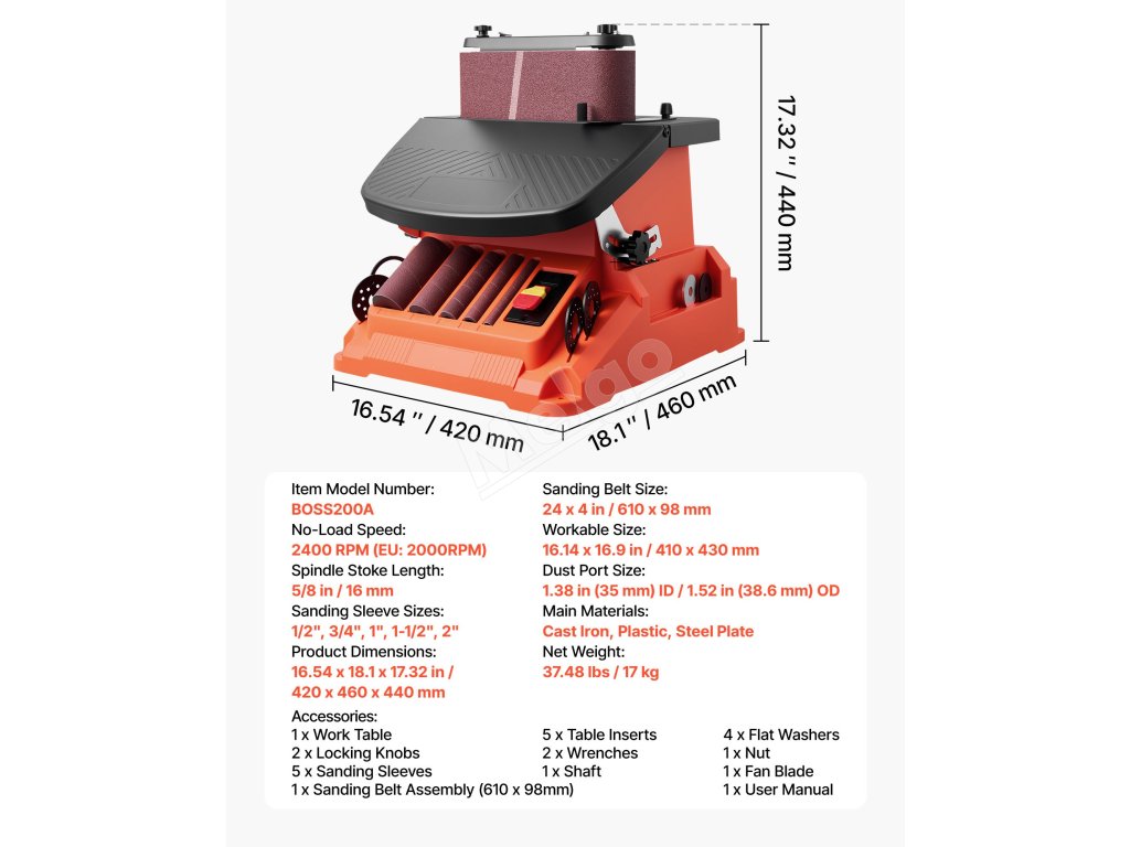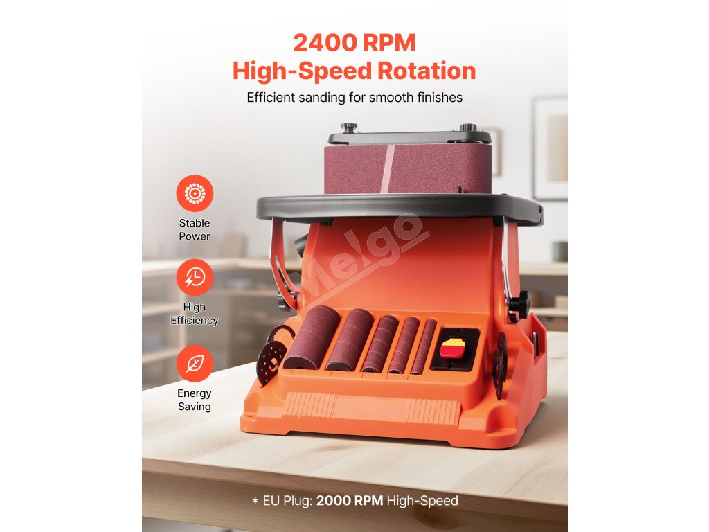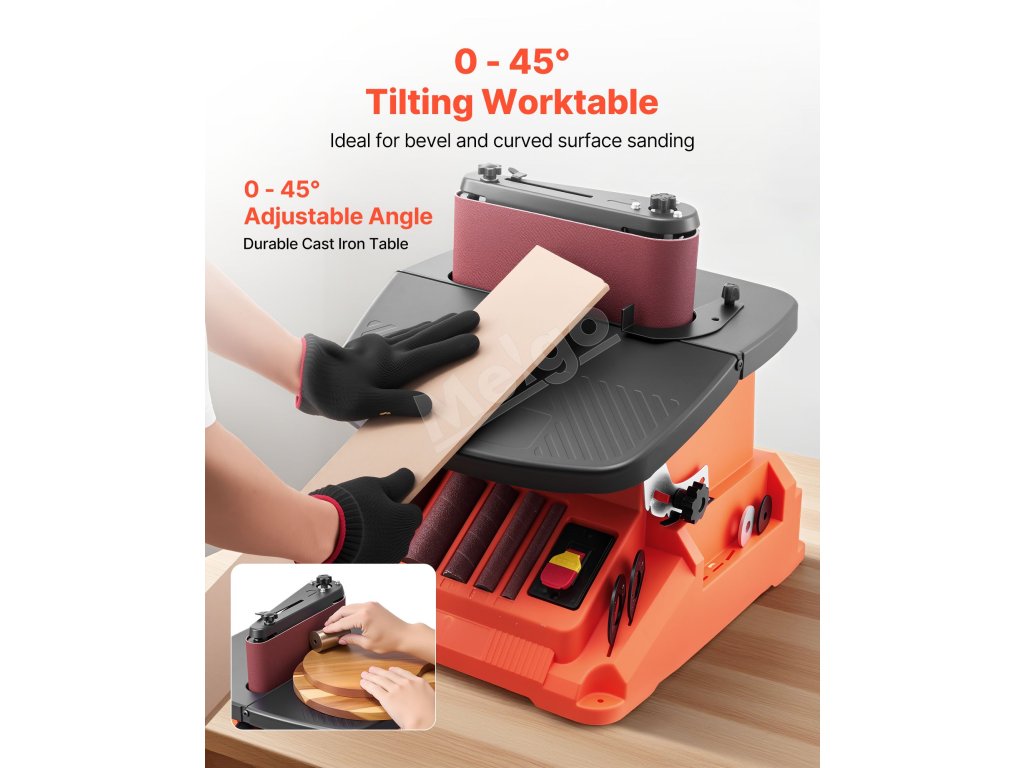 Oscilačná pásová a vretenová brúska VEVOR s 2000 otáčkami za minútu poskytuje hladké brúsenie na dokončovanie nábytku alebo na projekty pre domácich majstrov. S brúsnym pásom 610 x 98 mm, 5 brúsnymi puzdrami, 16 mm zdvihom a naklápacím pracovným stolom zabezpečuje presnejšie a efektívnejšie brúsenie pre hladké povrchy.