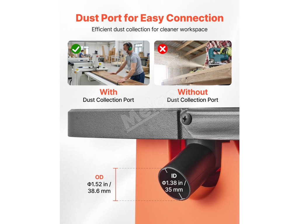 Vretenová brúska je vybavená prachovým otvorom s priemerom 35 mm a priemerom 38,6 mm, vďaka čomu ju možno ľahko pripojiť k vysávacím hadiciam na bezprašnú prevádzku, čím sa znižuje množstvo čistiacich prác, predlžuje životnosť zariadenia a udržiava čistý pracovný priestor.