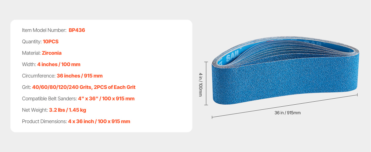 Táto 10-dielna sada brúsnych pásov obsahuje rôzne veľkosti zŕn, po 2 kusy zŕn 40, 60, 80, 120 a 240, čo vám poskytuje širokú škálu možností pre vaše brúsne potreby. Ideálne na opracovanie rôznych povrchov a dosiahnutie hladkého, profesionálneho povrchu.