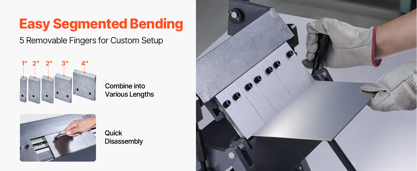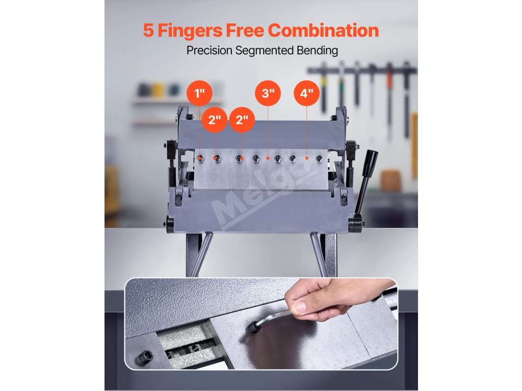Ohýbačka plechu obsahuje 5 odnímateľných prstov vo viacerých veľkostiach, ktoré možno ľubovoľne rozmiestniť tak, aby neprekážali na obrobku. Ideálna na tvarovanie kanálov na vystuženie podlahy, vlnitých lôžok nákladných vozidiel, čiel lôžok a vnútorných blatníkov.