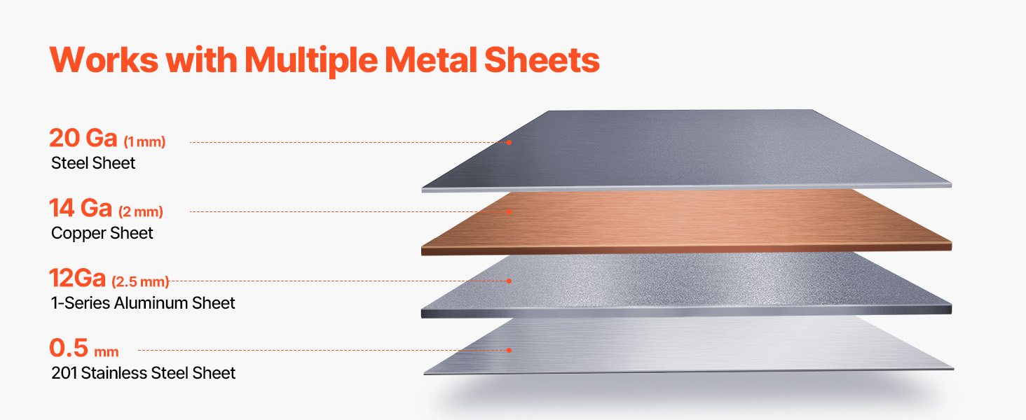 Skriňová a panvová brzda si ľahko poradí s mäkkou oceľou, nehrdzavejúcou oceľou, hliníkom a meďou. Ohýba mäkkú oceľ s hrúbkou 20 mm (1,0 mm) na jeden prechod - nie je potrebné meniť stroje na rôzne úlohy.