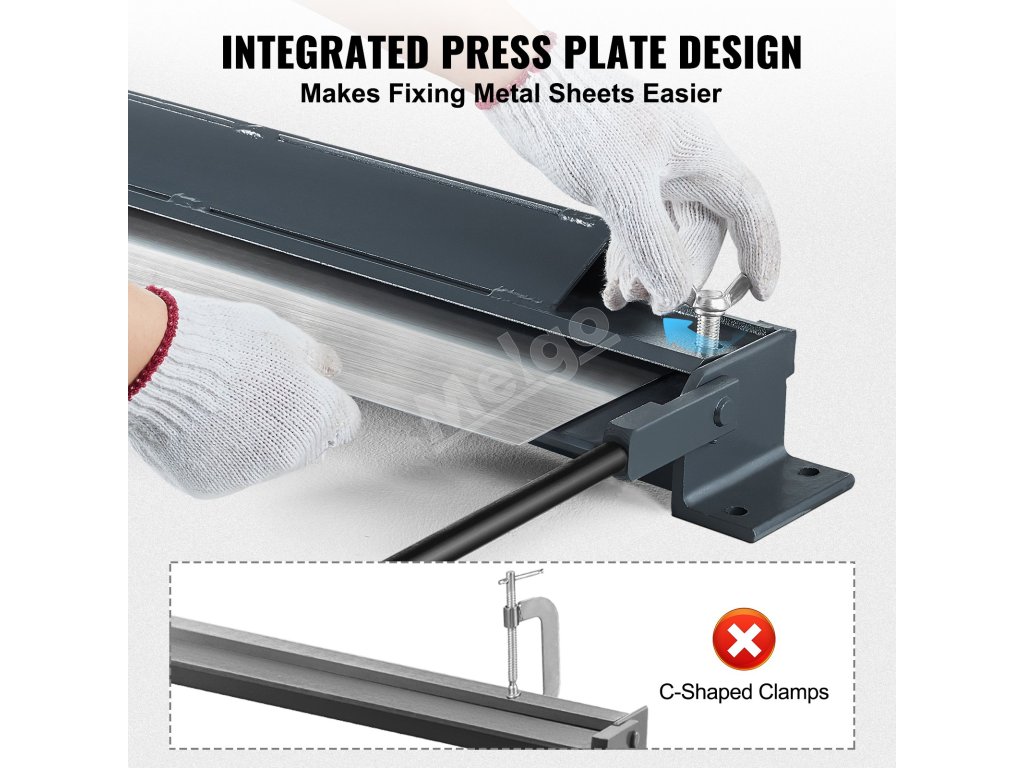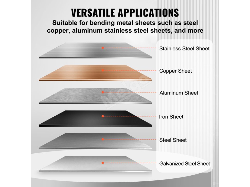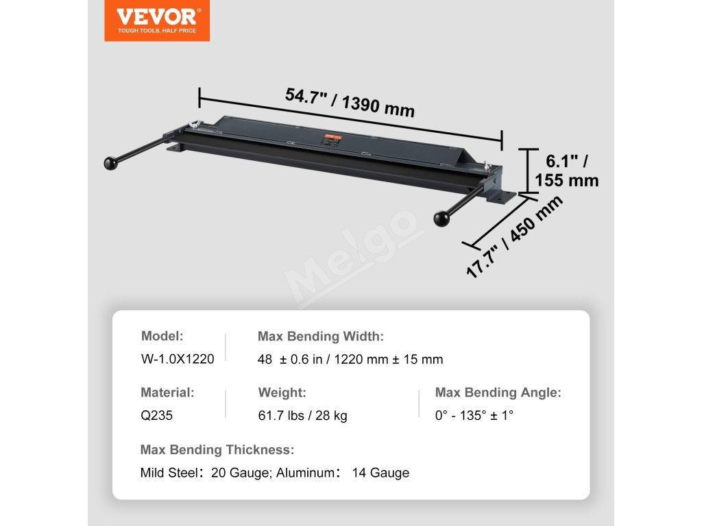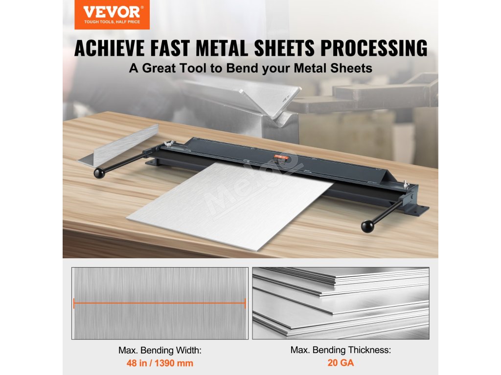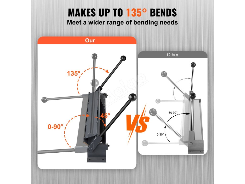 Táto brzda na ohýbanie plechu je ideálna na vytváranie potrubných systémov pecí, hardvérových ornamentov a ďalších. Dokáže ohýbať kov až do uhla 135 stupňov a ľahko ohýbať nízkouhlíkovú oceľ 20 alebo hliník 14, čo je vhodné pre profesionálnu výrobu a projekty pre domácich majstrov.