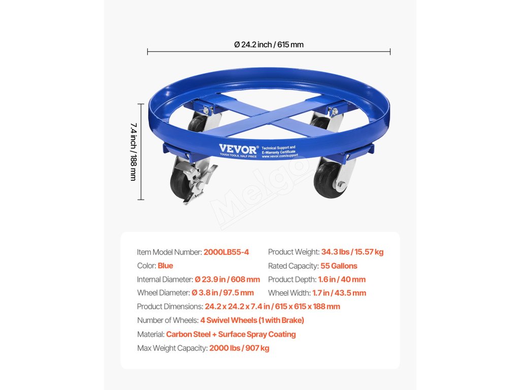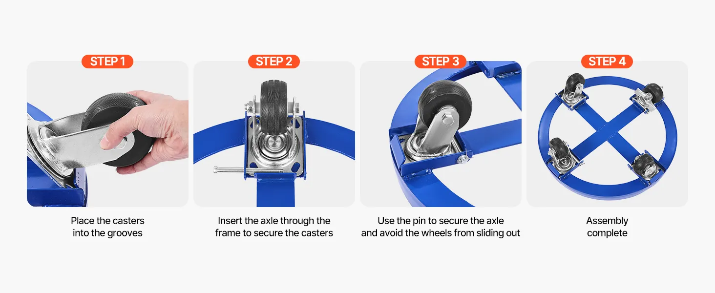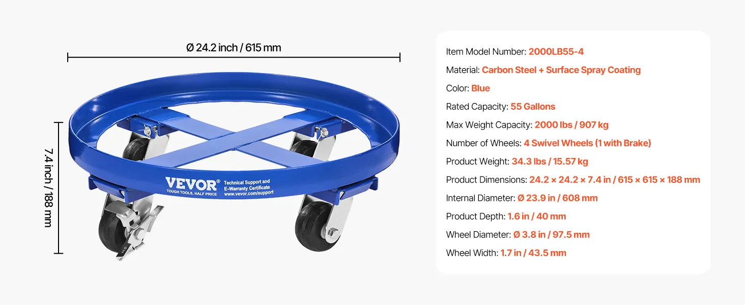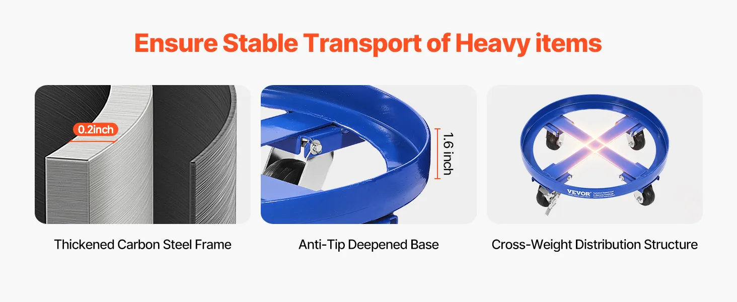 Premiestňujte ťažké sudy s ľahkosťou! Náš vozík na ťažké sudy je vybavený 4 hladkými 3,8-palcovými otočnými kolieskami, ktoré sa kĺžu po akomkoľvek povrchu. Kolieska môžete zablokovať, aby bolo všetko v bezpečí aj počas státia.