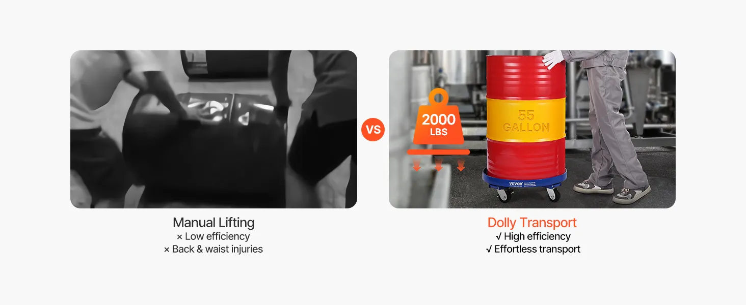S týmto vozíkom na sudy, určeným pre 55galónové sudy, ľahko prenesiete až 2000 libier. Jeho robustný rám zabezpečuje plynulú a bezpečnú prepravu, vďaka čomu budú vaše ťažké úlohy bez námahy!