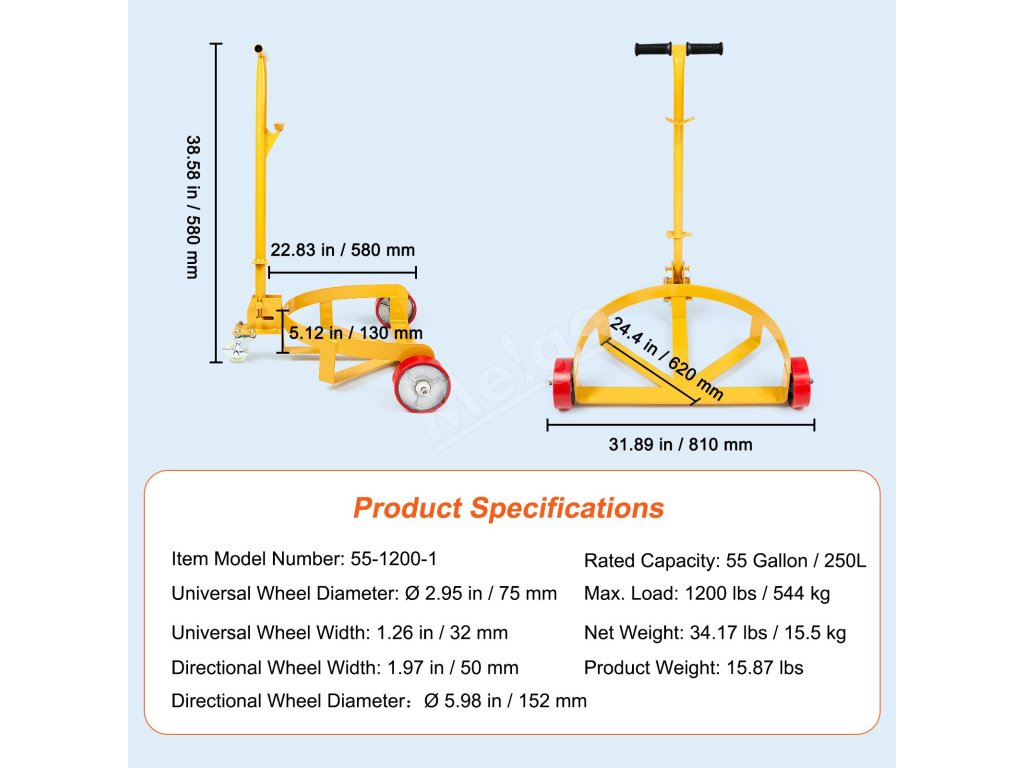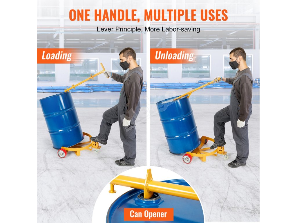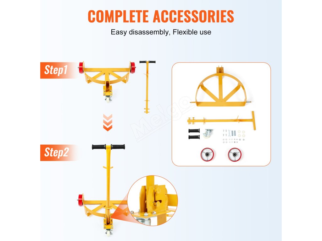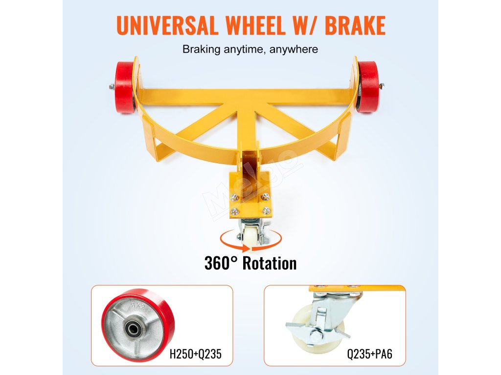 Podvozok na sudy 544.3 kg, oceľový, 3 kolieska, nastav. rukoväť