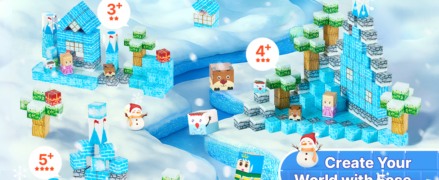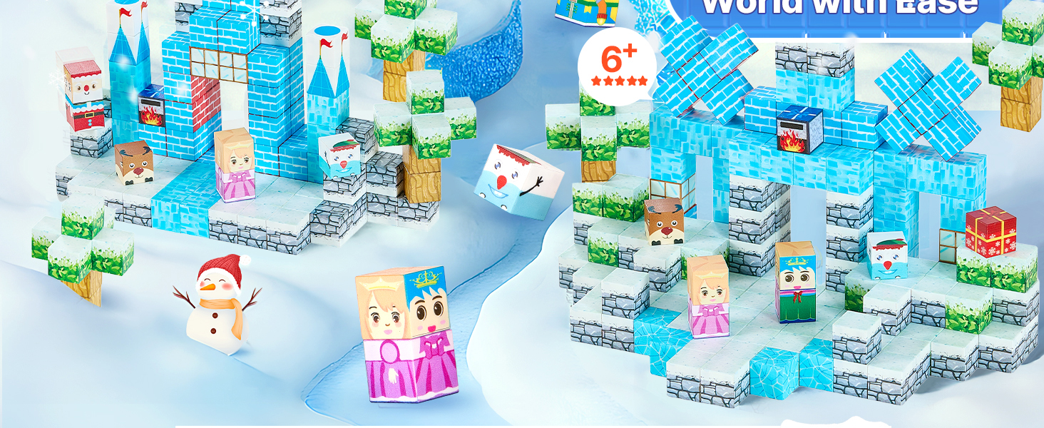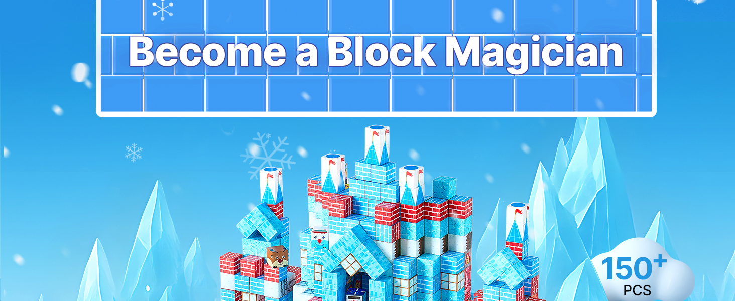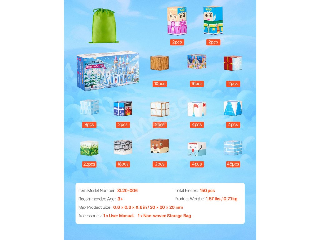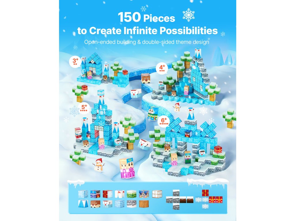 Magnetická stavebnica 150 dielov, ľadový zámok, pre deti 3+, stem