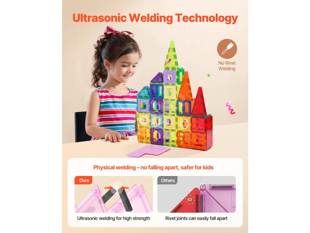 Naše magnetické stavebné dieliky, ktoré sú navrhnuté na hodiny nepretržitej hry, sú vybavené silnými magnetmi, vďaka ktorým všetko bezpečne drží na svojom mieste. Či už staviate vysoké veže alebo zložité stavby, deti sa môžu hrať s istotou, pretože vedia, že ich výtvory zostanú stabilné.