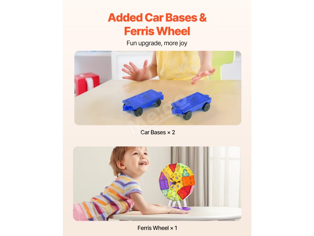 Magnetická stavebnica 180 ks s 2 podvozkami áut a kolotočom, 5+