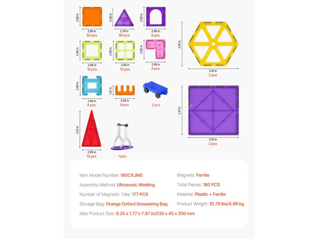 Tieto magnetické dlaždice sú vyrobené z bezpečných a odolných materiálov so silnejšími magnetmi, ktoré deťom umožňujú ľahko vytvárať rôzne tvary a štruktúry. Táto súprava, ktorá je ideálna na učenie tvarov, farieb, kombinácií a základných staviteľských zručností, poskytuje nekonečnú zábavu a možnosti.