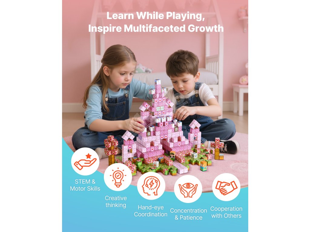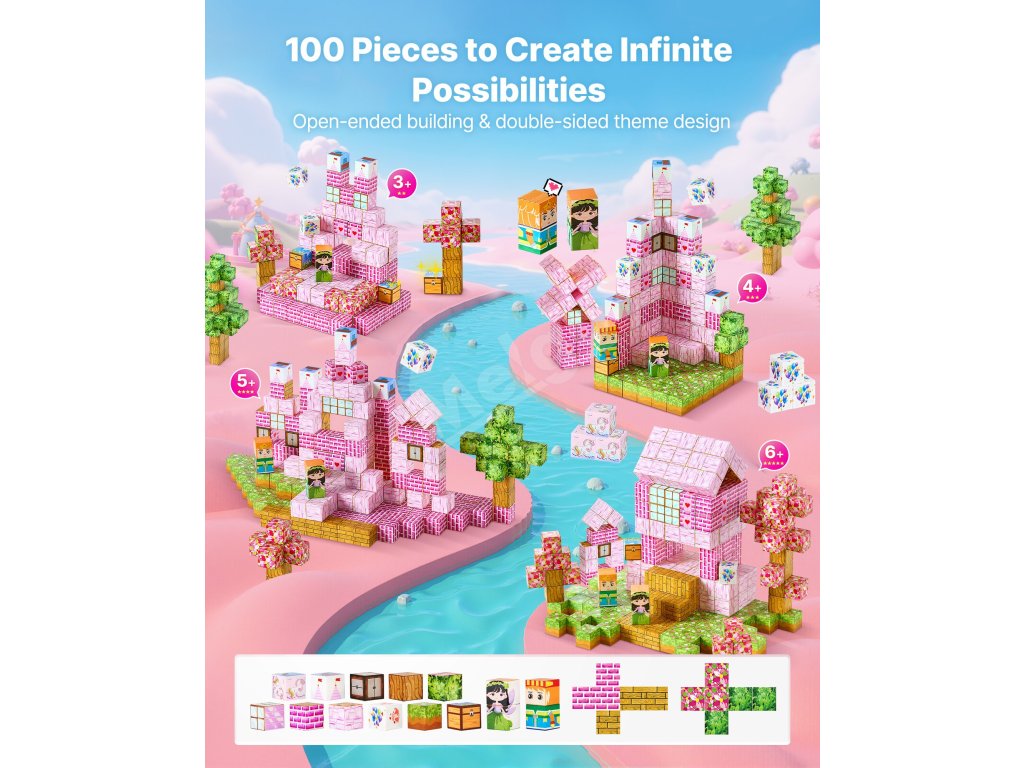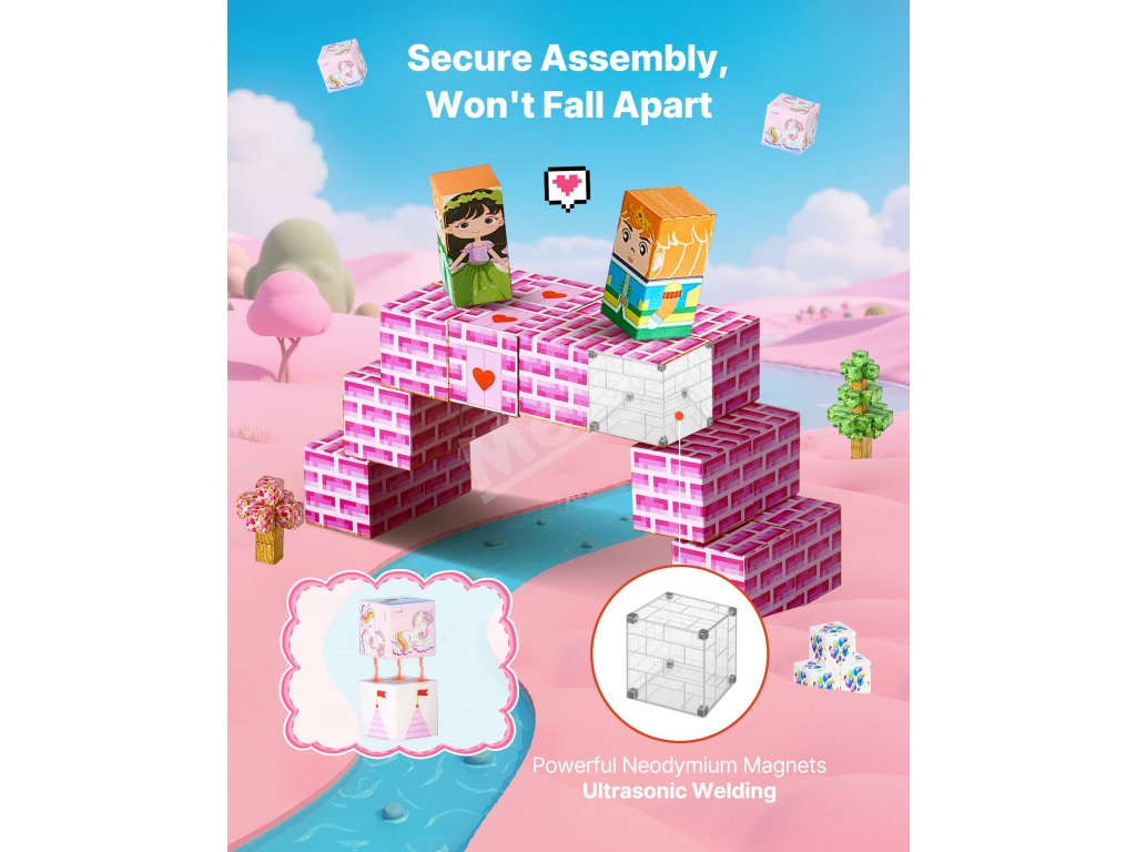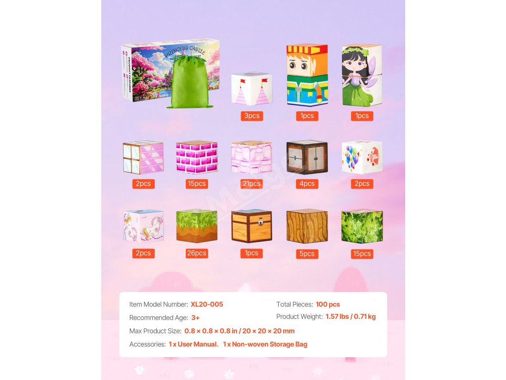 Magnetické kocky 100 ks sada princezného hradu montessori pre deti 3+