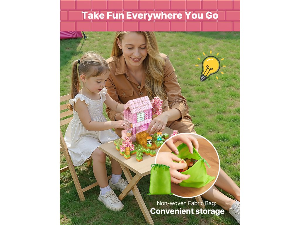 Naše magnetické stavebné kocky sa dodávajú s praktickou textilnou taškou na jednoduché skladovanie a zábavu vonku. Učte deti organizačným zručnostiam a zároveň udržiavajte všetko čisté a upratané!