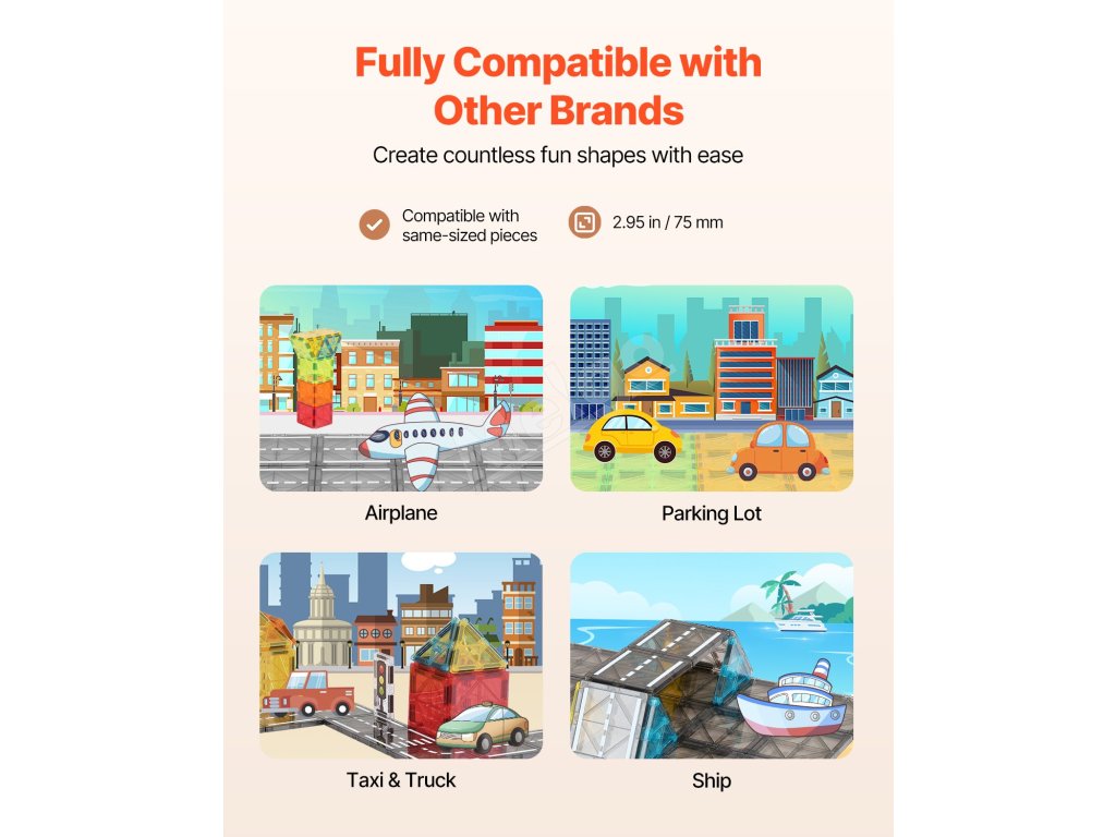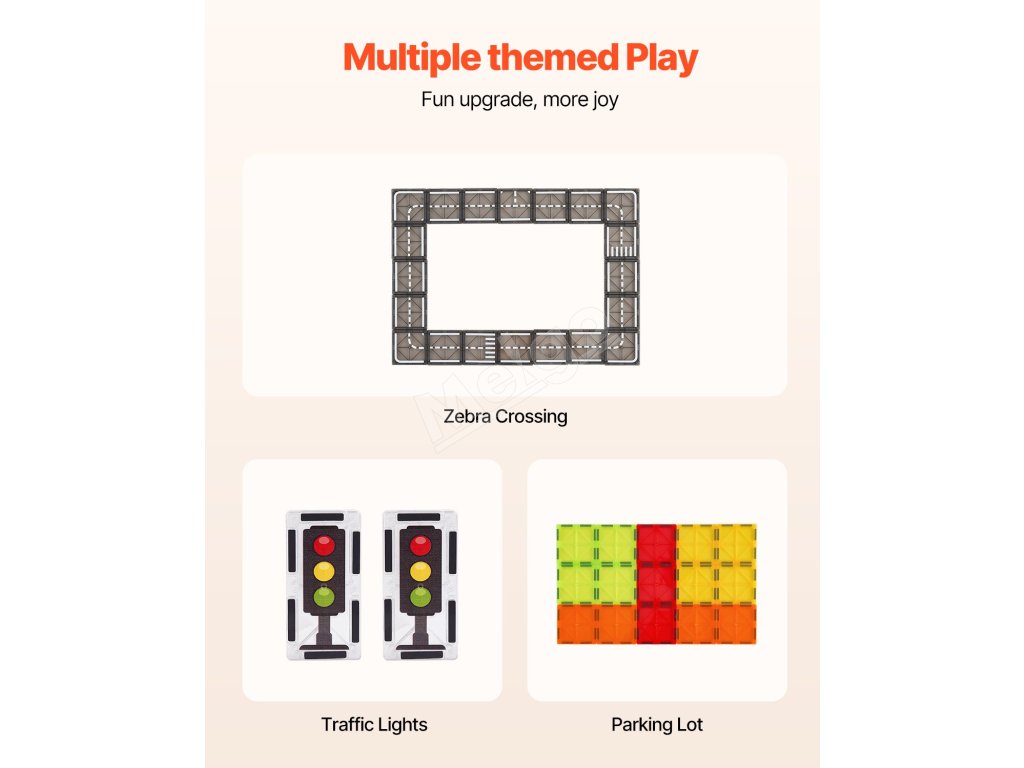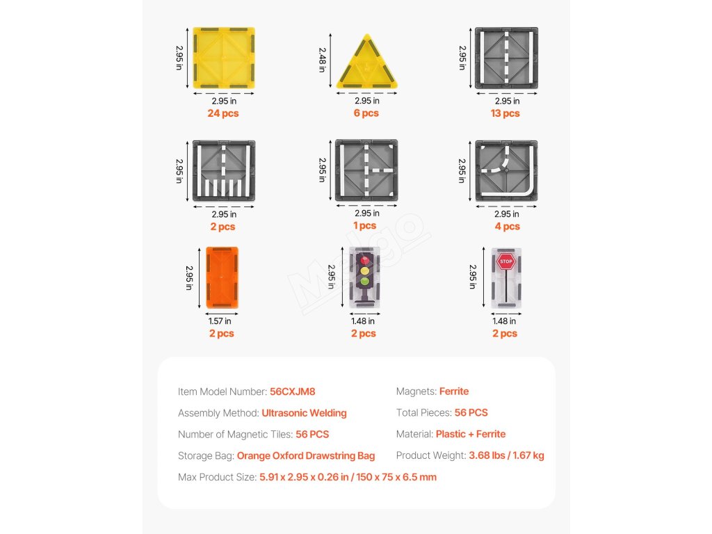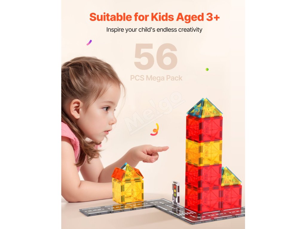Tieto magnetické dlaždice sú vyrobené z bezpečných a odolných materiálov so silnejšími magnetmi, ktoré deťom umožňujú ľahko vytvárať rôzne tvary a štruktúry. Táto súprava, ktorá je ideálna na učenie tvarov, farieb, kombinácií a základných staviteľských zručností, poskytuje nekonečnú zábavu a možnosti.