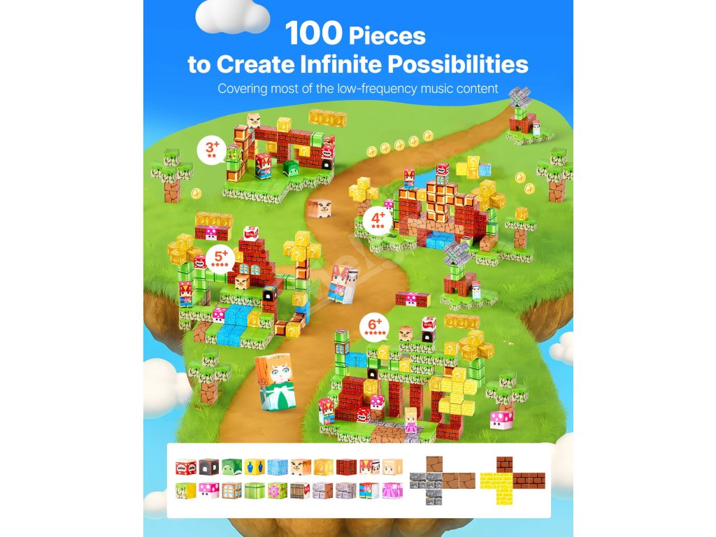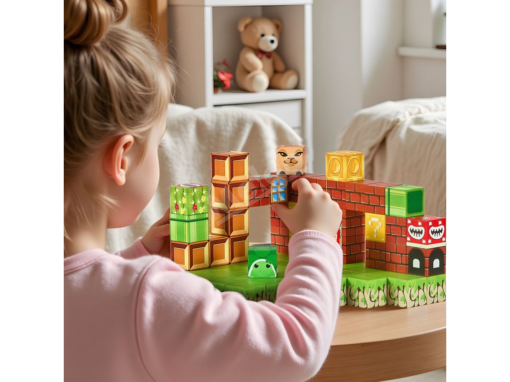 Magnetické kocky s otvoreným koncom umožňujú dieťaťu rozvíjať fantáziu - od plochých domčekov až po 3D bludiská - a nepotrebujú žiadnu obrazovku na hodiny zábavy!