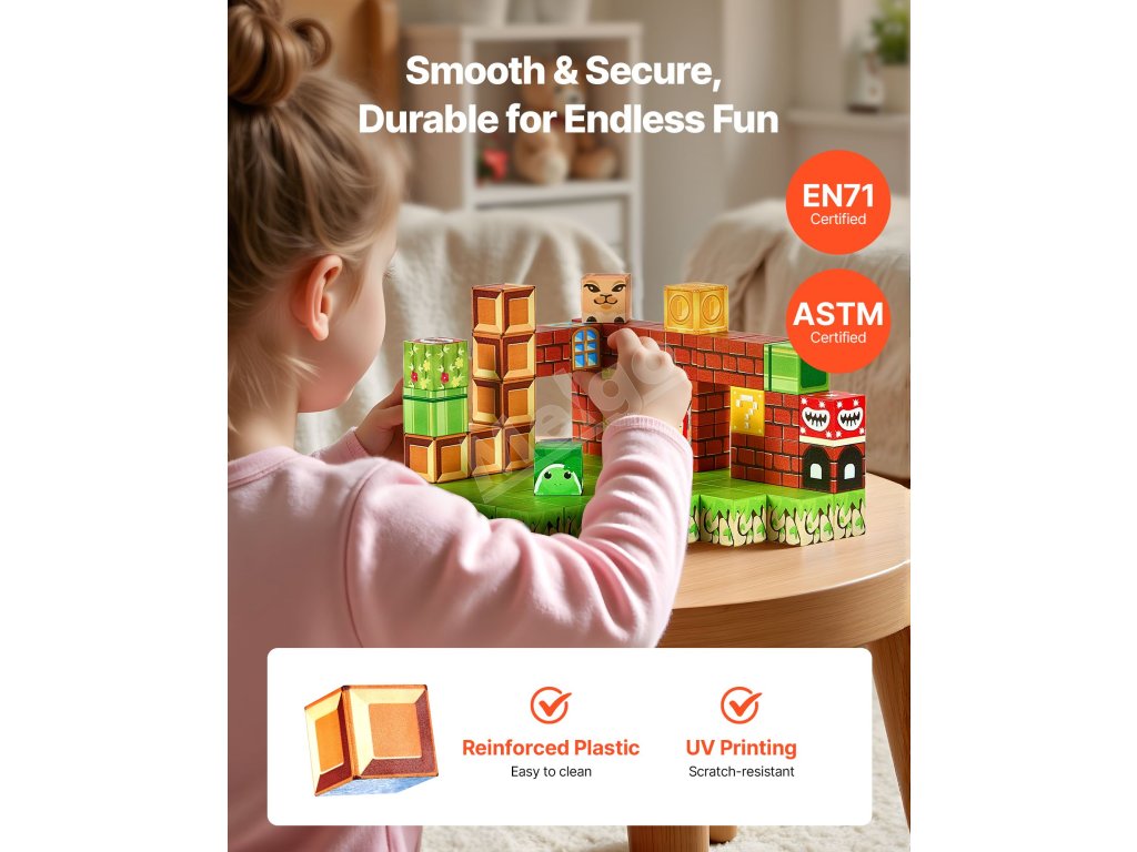 Tieto magnetické stavebné kocky, ktoré sú v súlade s bezpečnostnými normami pre hračky, sú vyrobené zo spoľahlivých materiálov s veľkosťou vhodnou pre deti, čo zaručuje bezpečnú hru a zároveň zabraňuje prehltnutiu.