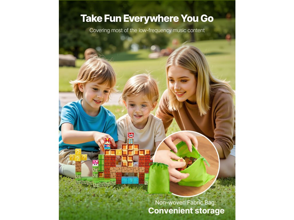 Naše magnetické stavebné kocky sa dodávajú s praktickou textilnou taškou na jednoduché skladovanie a zábavu vonku. Učte deti organizačným zručnostiam a zároveň udržiavajte všetko čisté a upratané!
