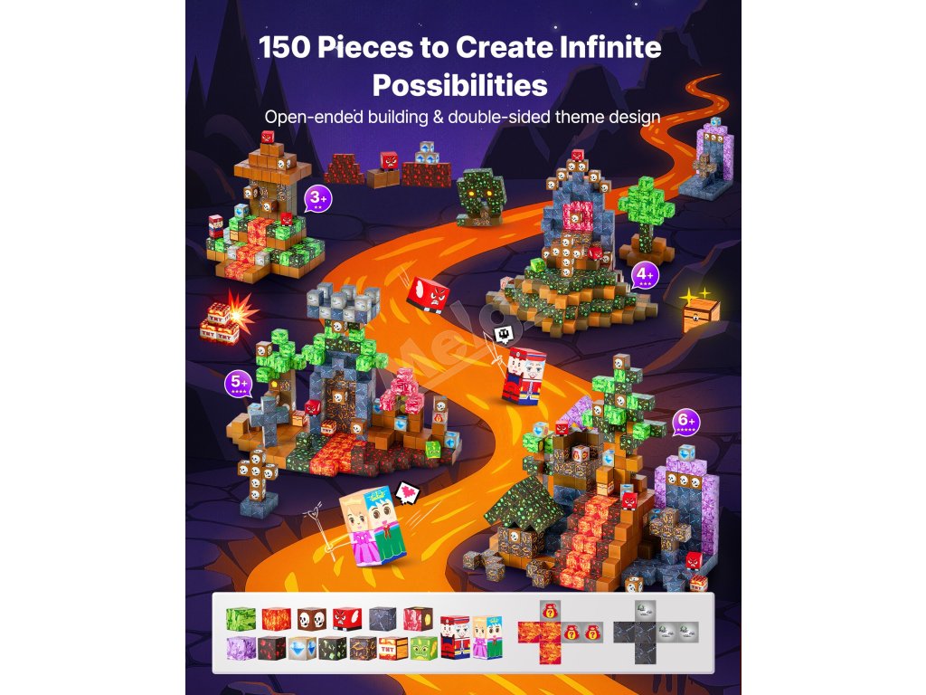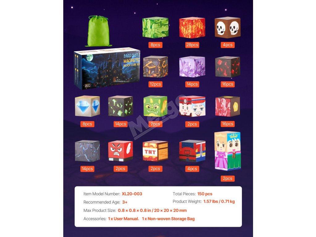 Magnetické stavebné kocky 150 ks, tmavý hrad, montessori, pre 3+ roky