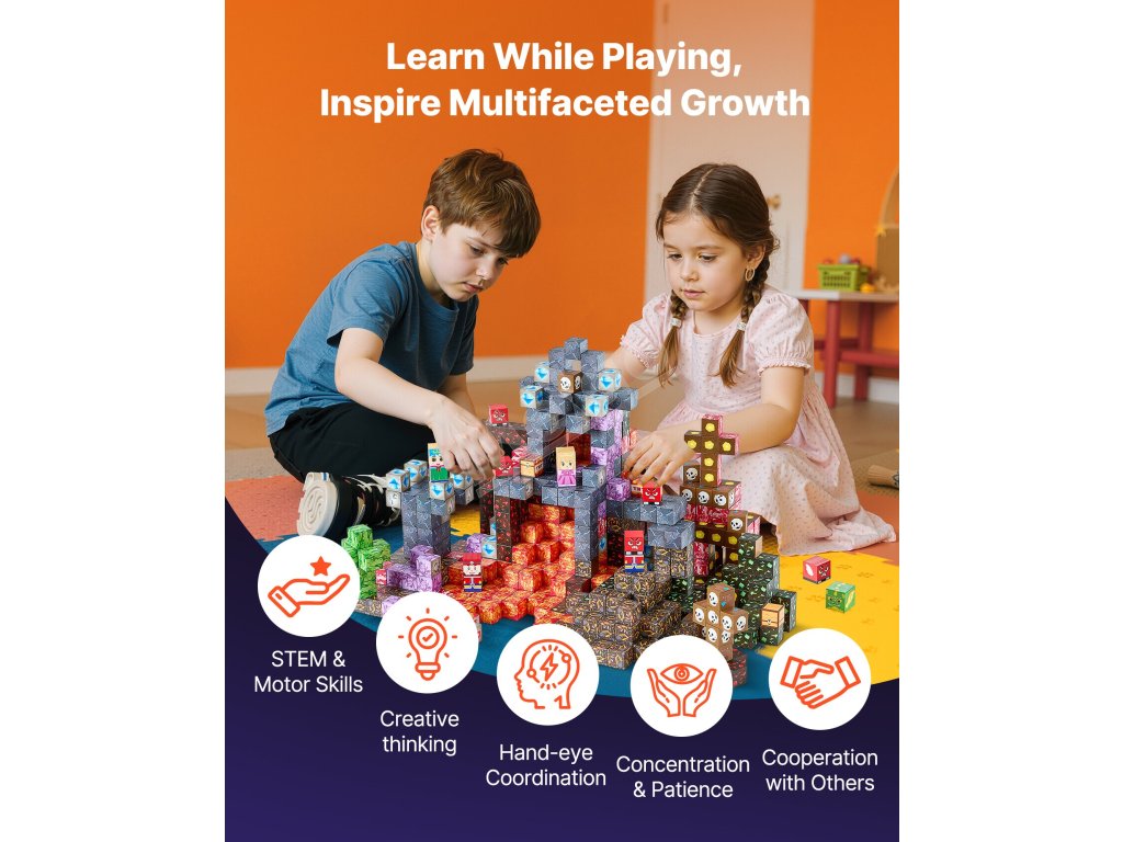 Táto stavebná magnetická súprava spája vedu a zábavu a podporuje rozvoj priestorového povedomia, riešenia problémov a jemnej motoriky vášho dieťaťa. Ideálna na aktivity v rodine alebo v triede.