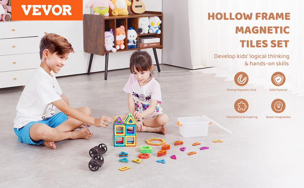 Tieto magnetické dlaždice sú vyrobené z bezpečných a odolných materiálov so silnejšími magnetmi, ktoré deťom umožňujú ľahko vytvárať rôzne tvary a štruktúry. Táto súprava, ktorá je ideálna na učenie tvarov, farieb, kombinácií a základných staviteľských zručností, poskytuje nekonečnú zábavu a možnosti.
