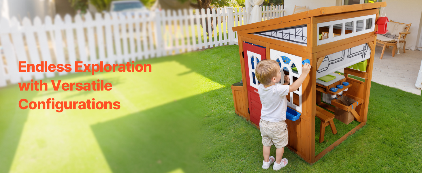 Premeňte svoju záhradu na svet zábavy s naším dreveným vonkajším domčekom na hranie